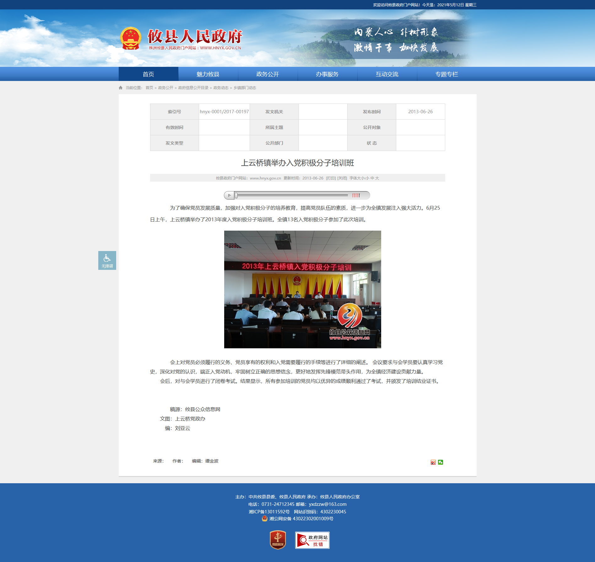 为了确保党员发展质量,加强对入党积极分子的培养教育,提高党员队伍的素质,进一步为全镇发展注入强大活力。6月25日上午,上云桥镇举办了2013年度入党积极分子培训班。全镇13名入党积极分子参加了此次培训。