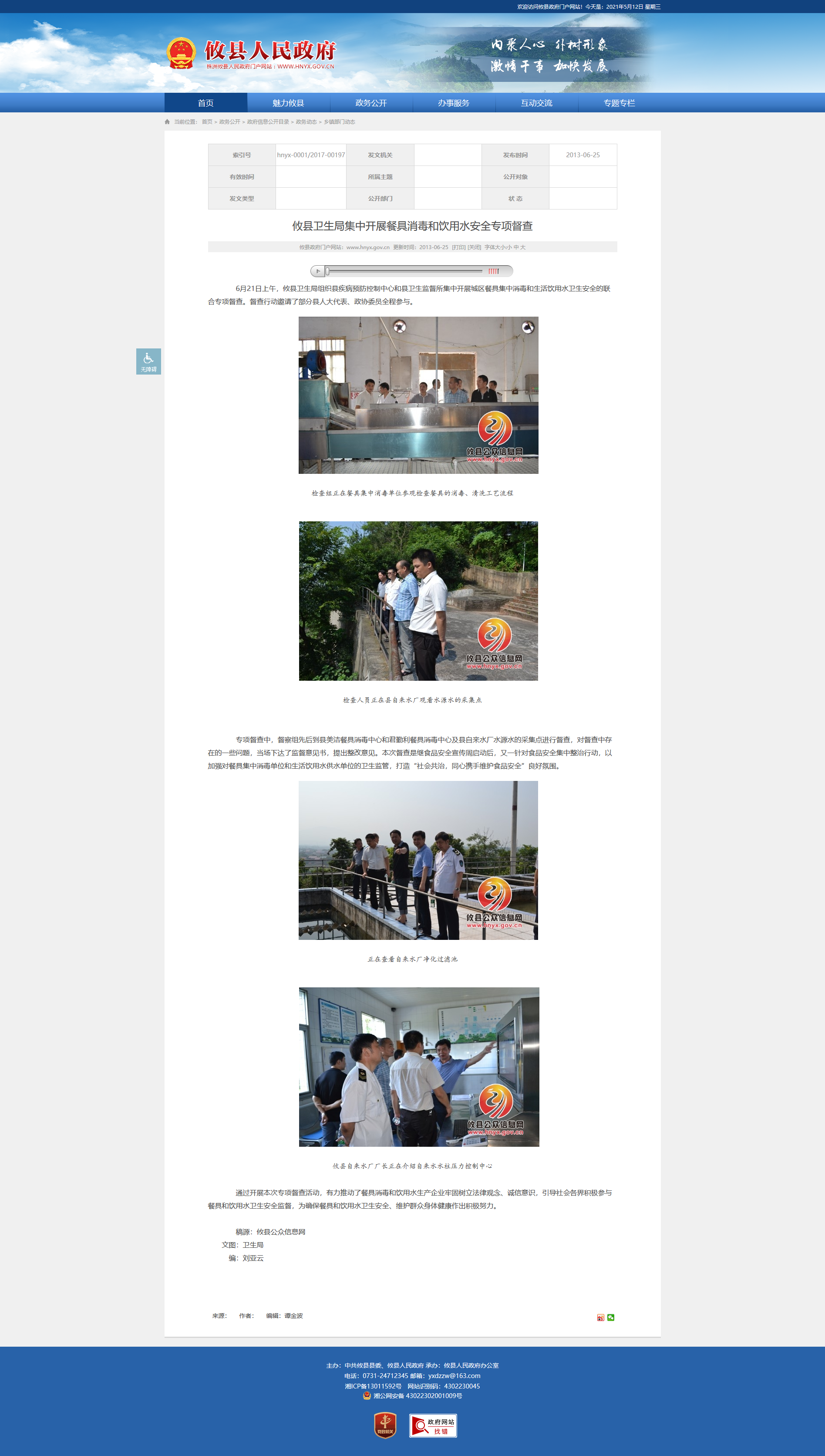 6月21日上午,攸县卫生局组织县疾病预防控制中心和县卫生监督所集中开展城区餐具集中消毒和生活饮用水卫生安全的联合专项督查。督查行动邀请了部分县人大代表、政协委员全程参与。