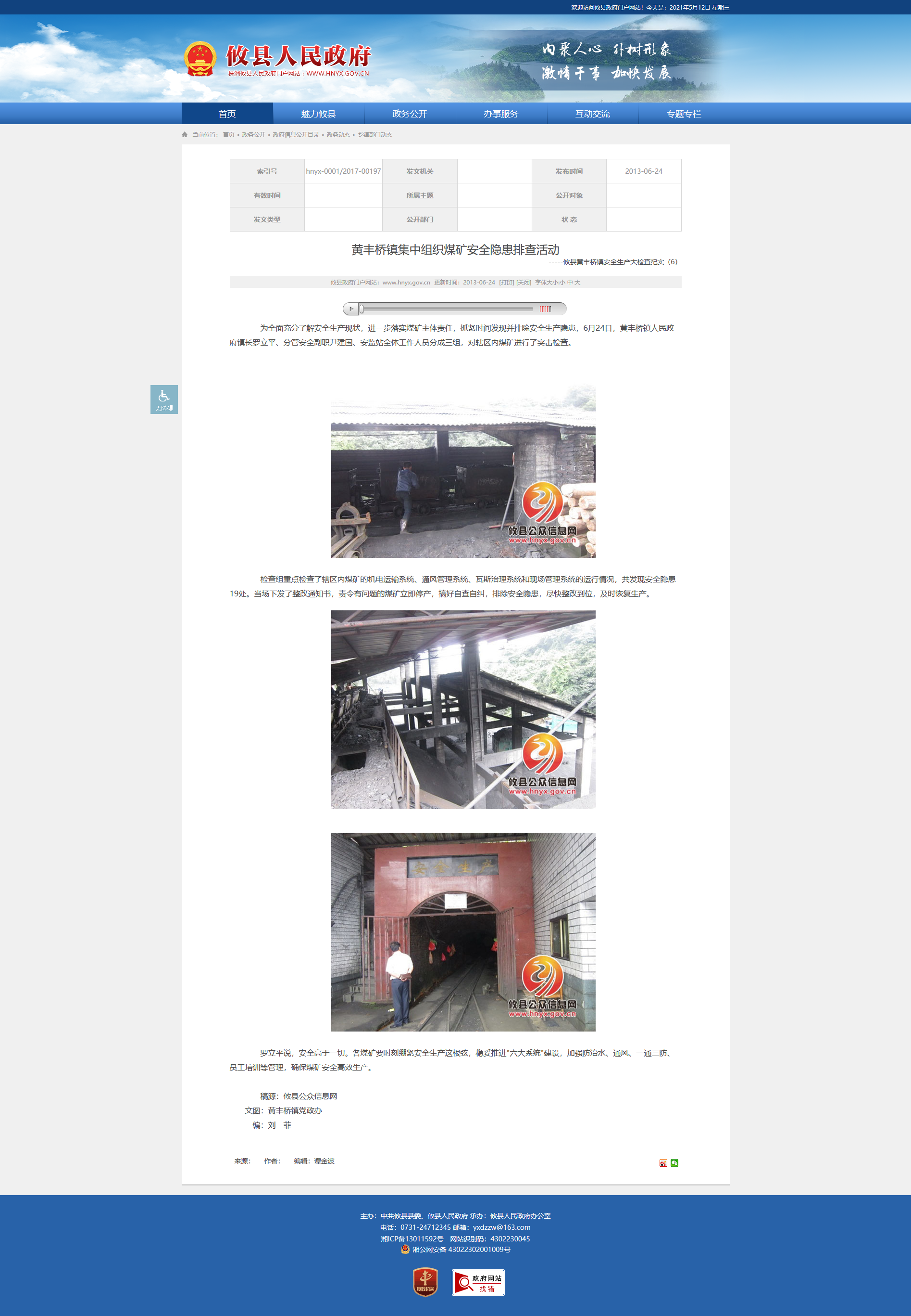 为全面充分了解安全生产现状,进一步落实煤矿主体责任,抓紧时间发现并排除安全生产隐患,6月24日,黄丰桥镇人民政府镇长罗立平、分管安全副职尹建国、安监站全体工作人员分成三组,对辖区内煤矿进行了突击检查。