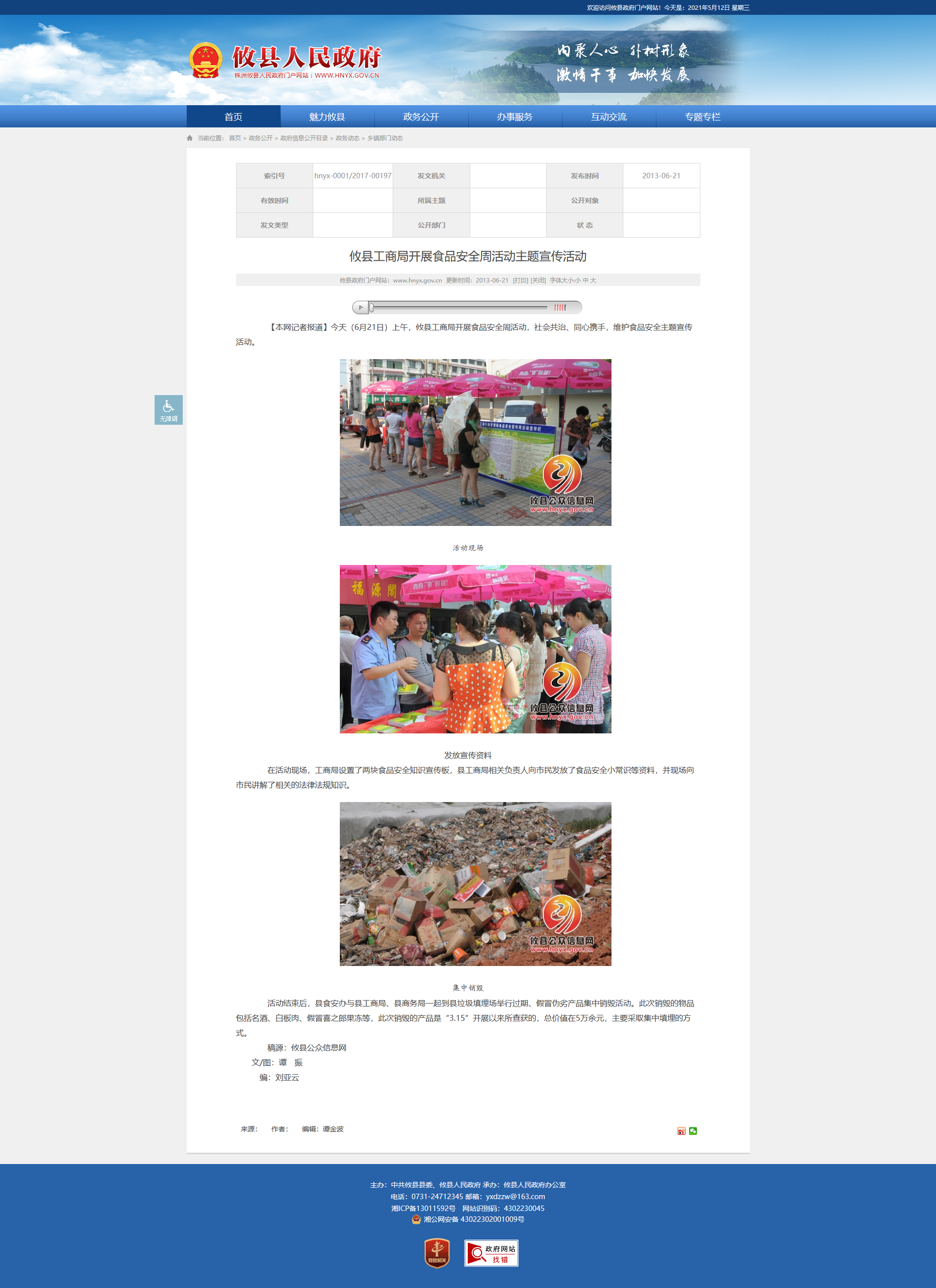 【本网记者报道】今天(6月21日)上午,攸县工商局开展食品安全周活动,社会共治、同心携手,维护食品安全主题宣传活动。