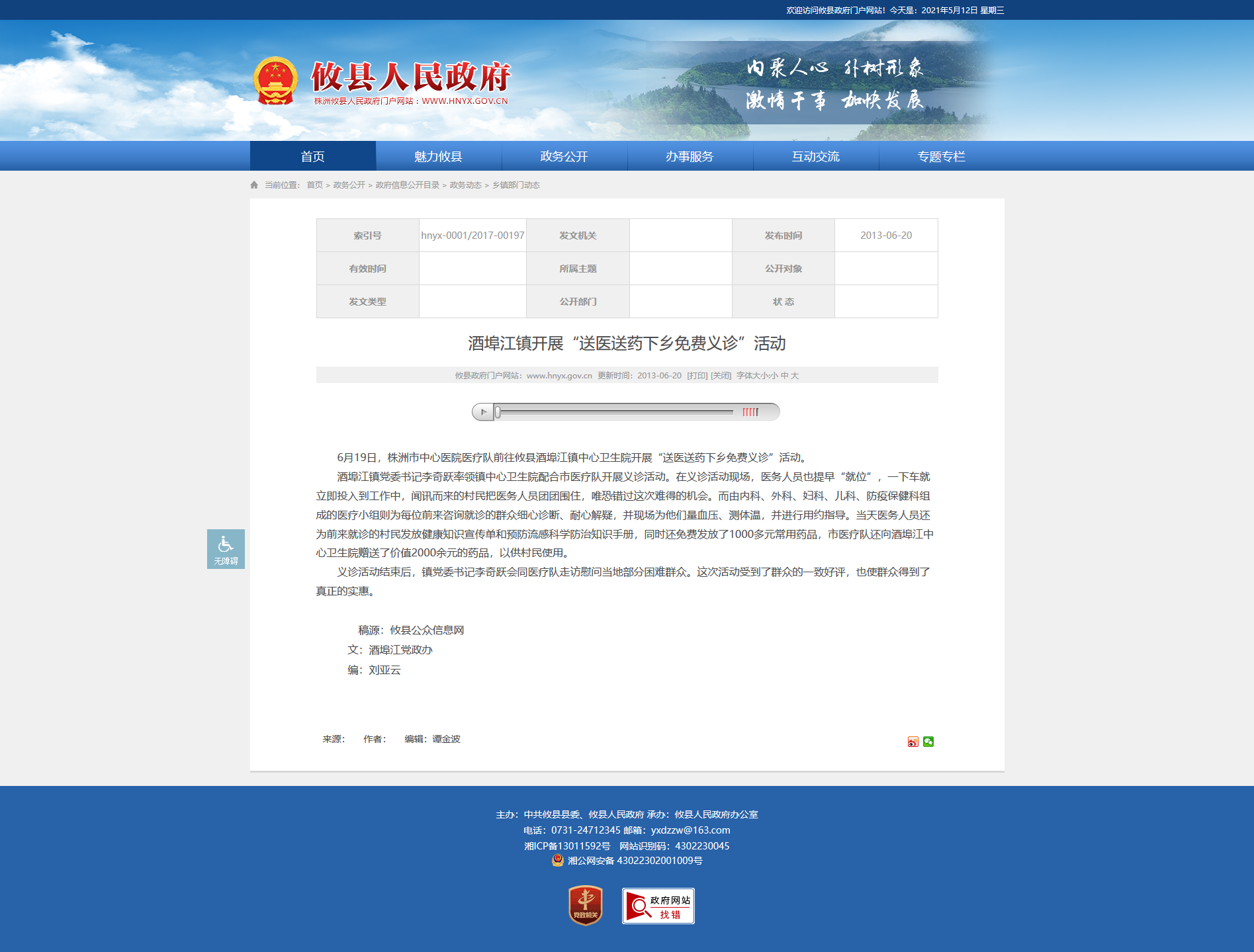 6月19日,株洲市中心医院医疗队前往攸县酒埠江镇中心卫生院开展“送医送药下乡免费义诊”活动。