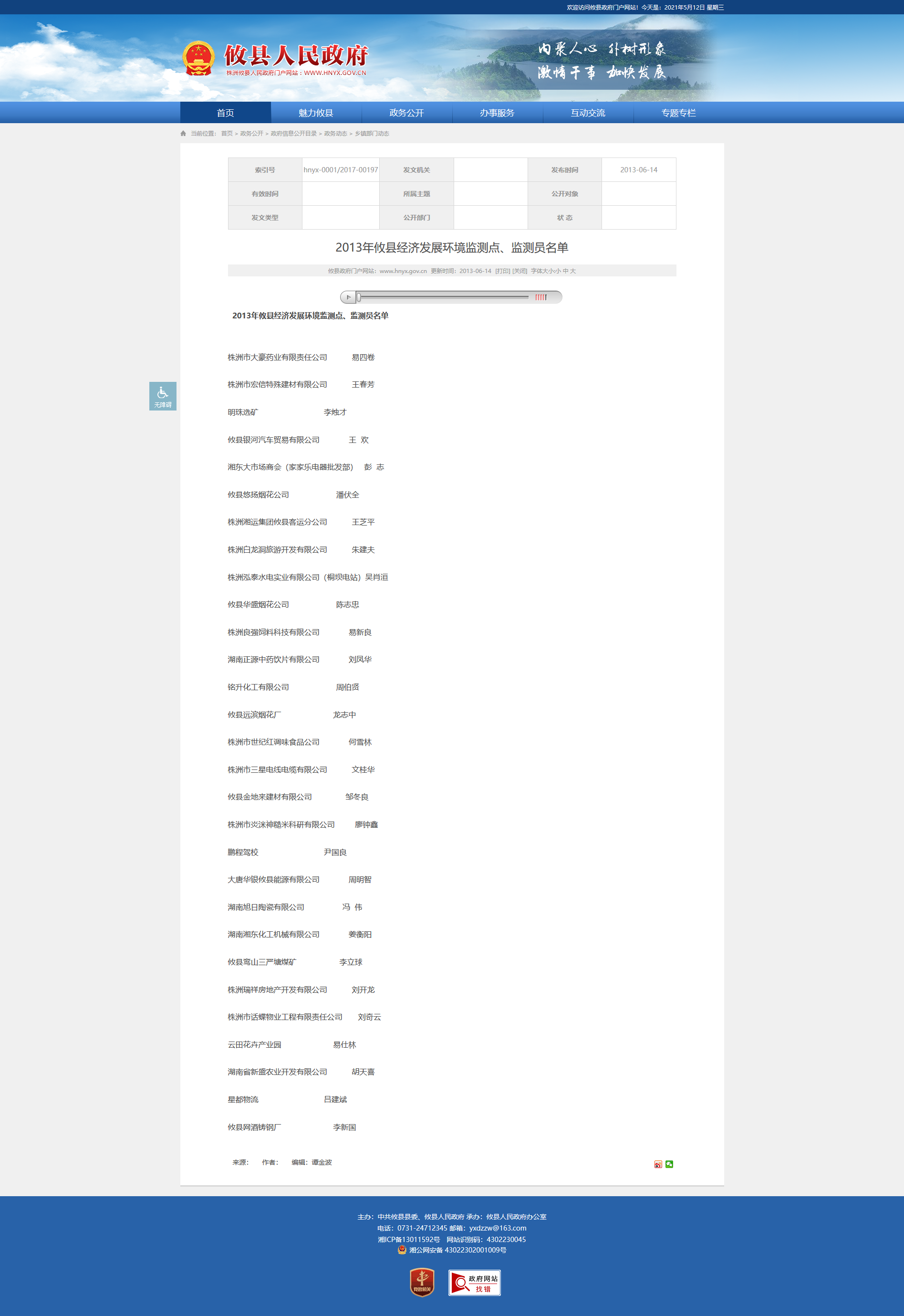 2013年攸县经济发展环境监测点、监测员名单