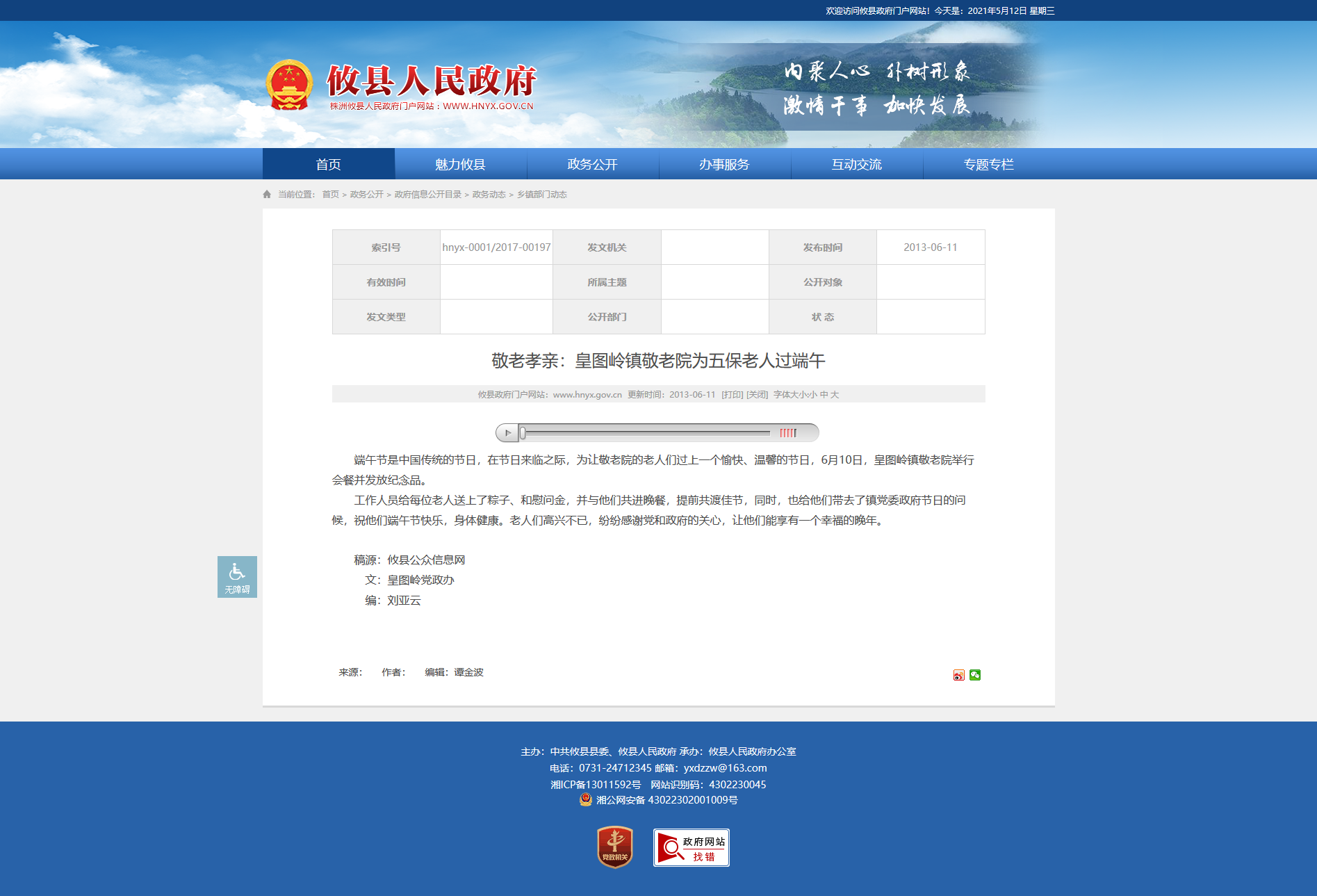 敬老孝亲:皇图岭镇敬老院为五保老人过端午