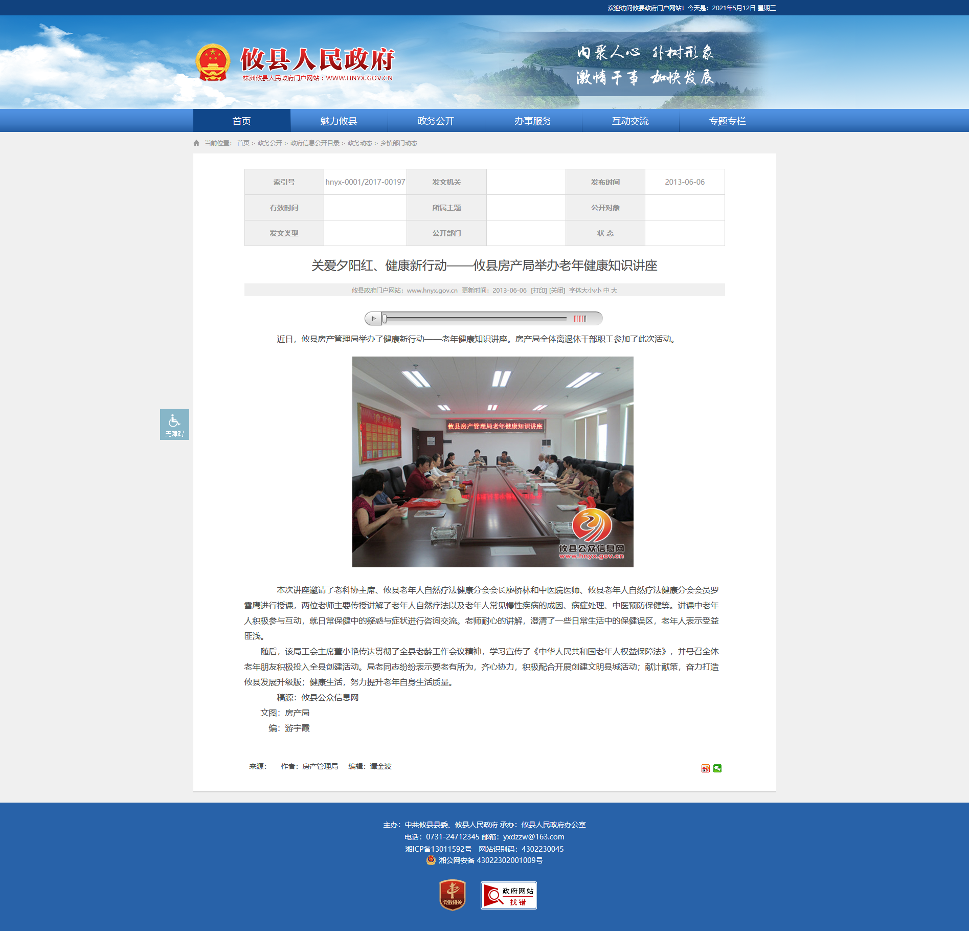 近日,攸县房产管理局举办了健康新行动——老年健康知识讲座。房产局全体离退休干部职工参加了此次活动。