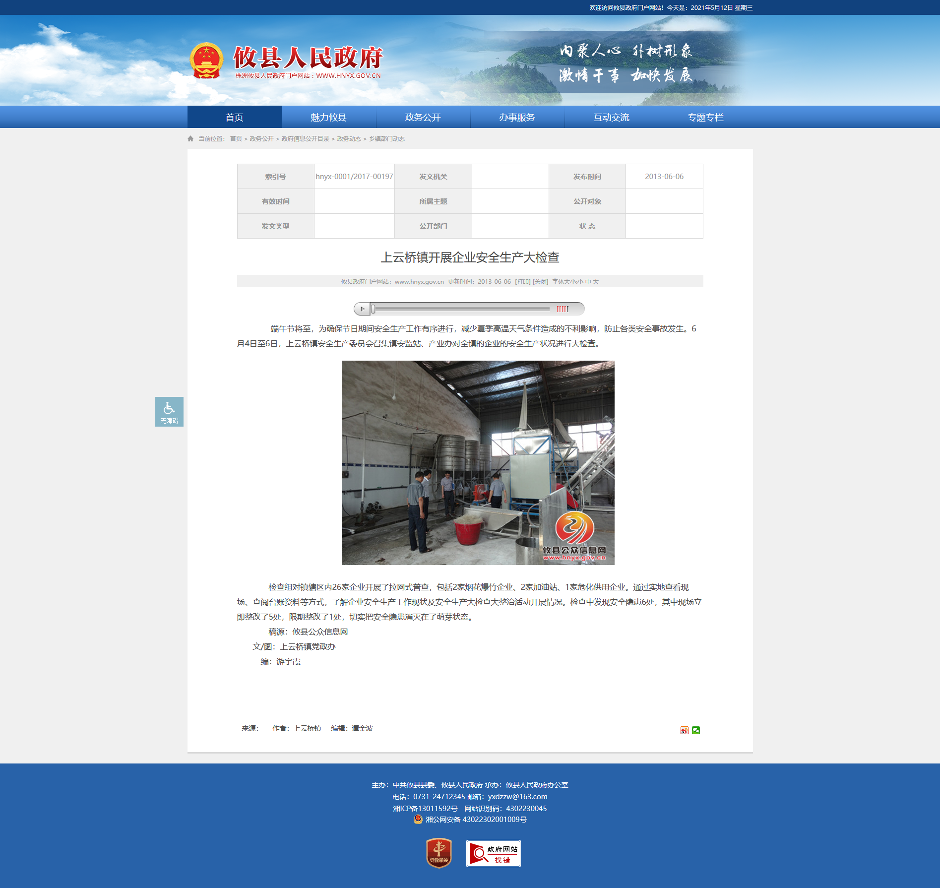 端午节将至,为确保节日期间安全生产工作有序进行,减少夏季高温天气条件造成的不利影响,防止各类安全事故发生。6月4日至6日,上云桥镇安全生产委员会召集镇安监站、产业办对全镇的企业的安全生产状况进行大检查。