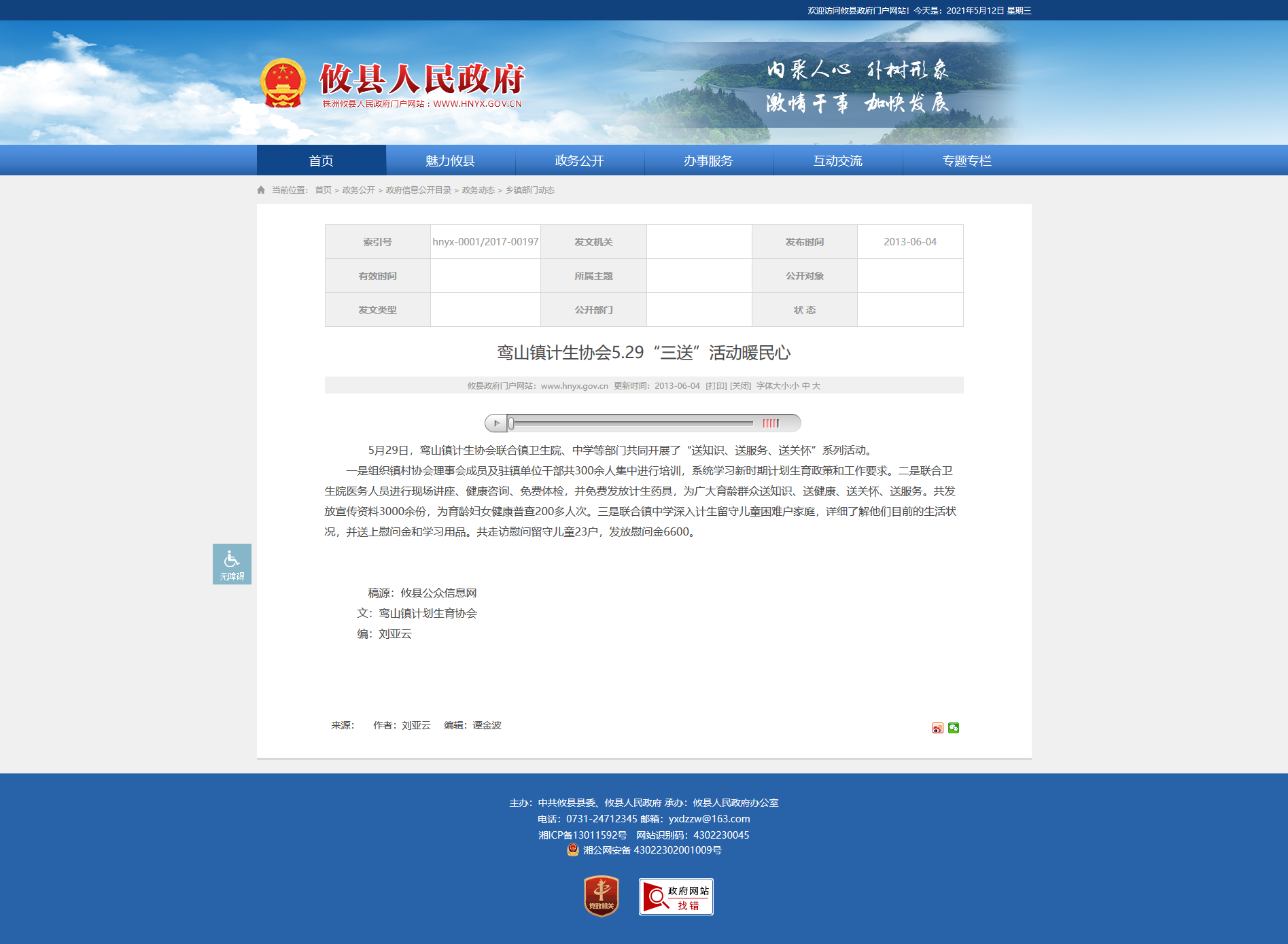 5月29日,鸾山镇计生协会联合镇卫生院、中学等部门共同开展了“送知识、送服务、送关怀”系列活动。