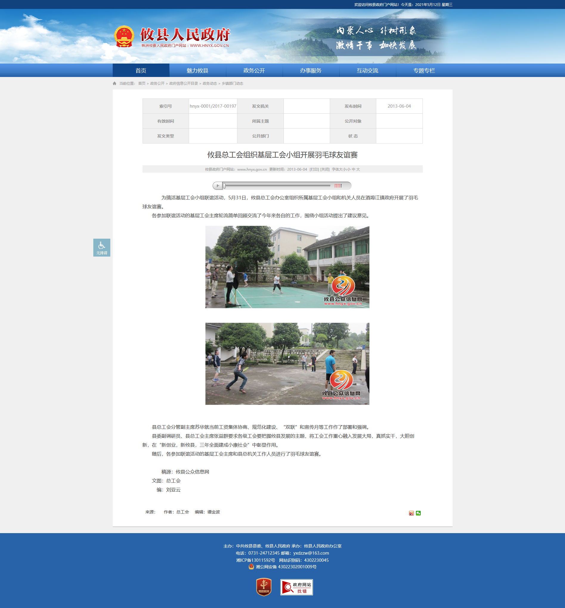 为搞活基层工会小组联谊活动,5月31日,攸县总工会办公室组织所属基层工会小组和机关人员在酒埠江镇政府开展了羽毛球友谊赛。