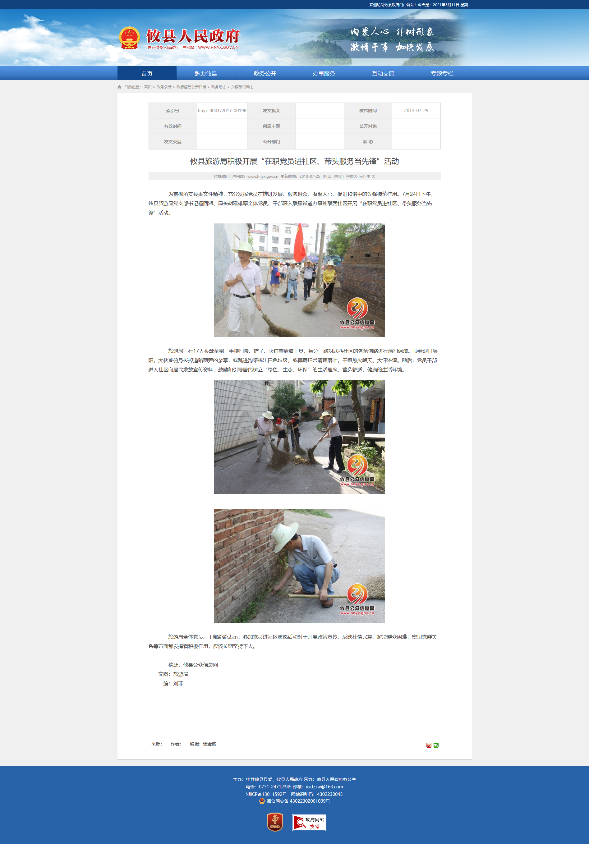 为贯彻落实县委文件精神,充分发挥党员在推进发展、服务群众、凝聚人心、促进和谐中的先锋模范作用。7月24日下午,攸县旅游局党支部书记杨回湘、局长胡建雄率全体党员、干部深入联星街道办事处联西社区开展“在职党员进社区、带头服务当先锋”活动。