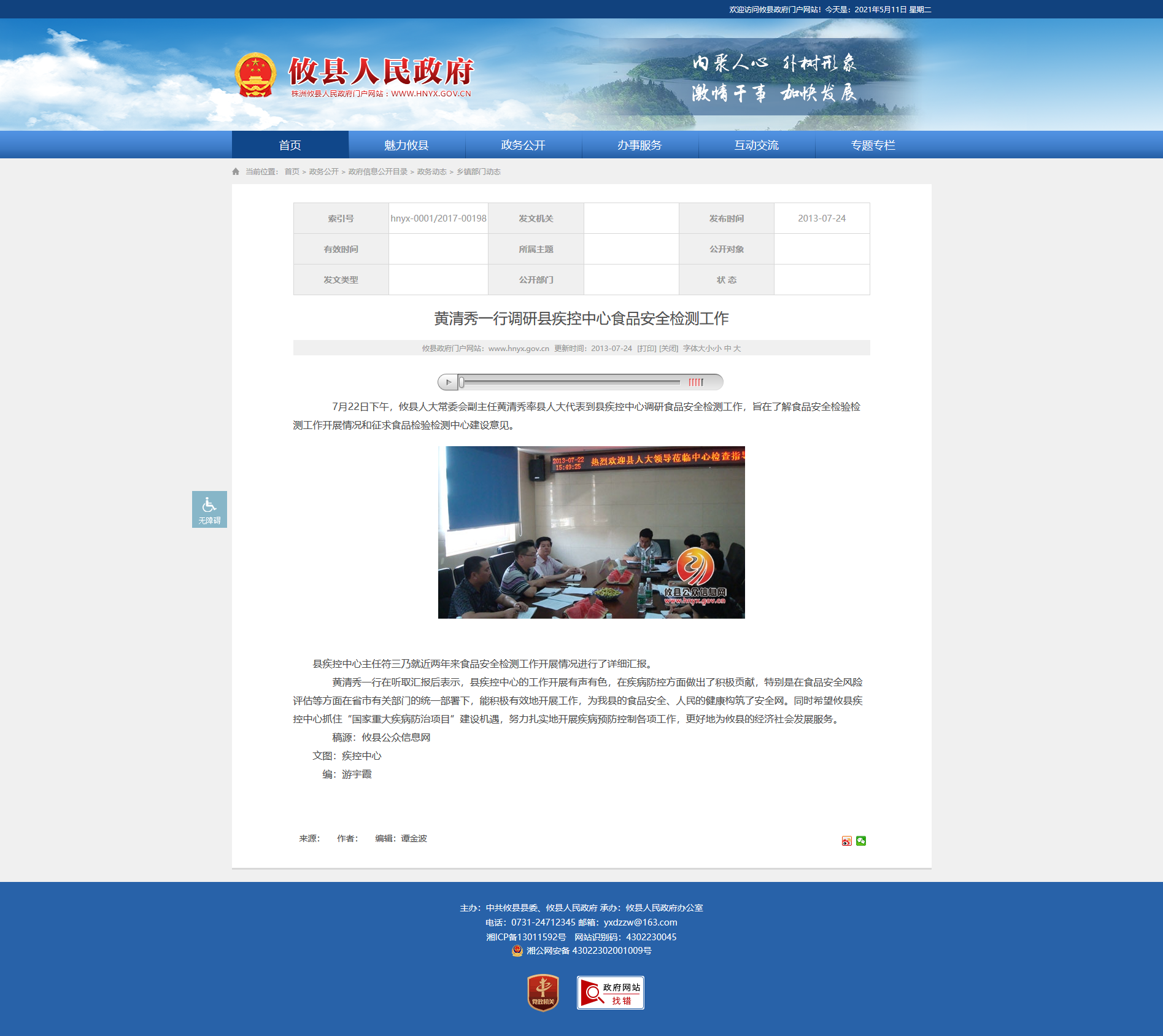 7月22日下午,攸县人大常委会副主任黄清秀率县人大代表到县疾控中心调研食品安全检测工作,旨在了解食品安全检验检测工作开展情况和征求食品检验检测中心建设意见。