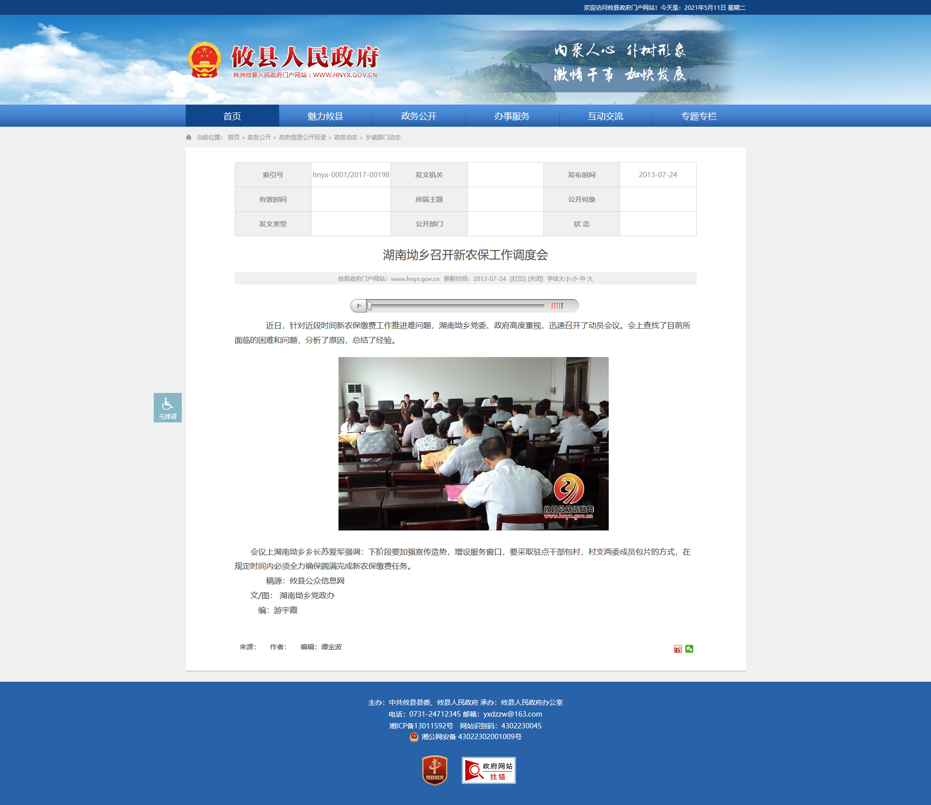 近日,针对近段时间新农保缴费工作推进难问题,湖南坳乡党委、政府高度重视,迅速召开了动员会议。会上查找了目前所面临的困难和问题,分析了原因,总结了经验。