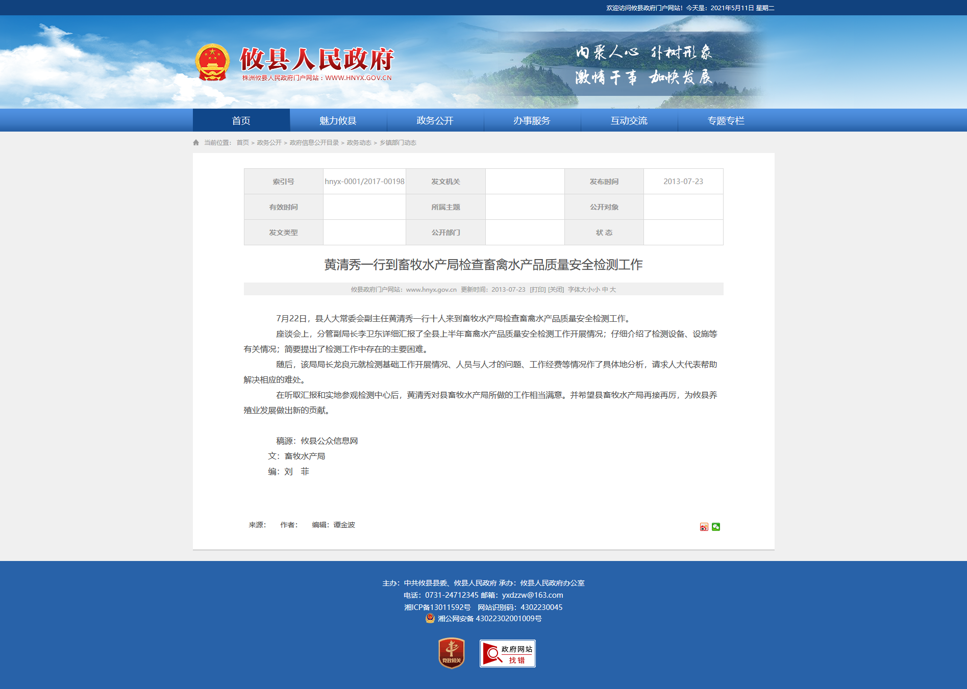 在听取汇报和实地参观检测中心后,黄清秀对县畜牧水产局所做的工作相当满意。并希望县畜牧水产局再接再厉,为攸县养殖业发展做出新的贡献。