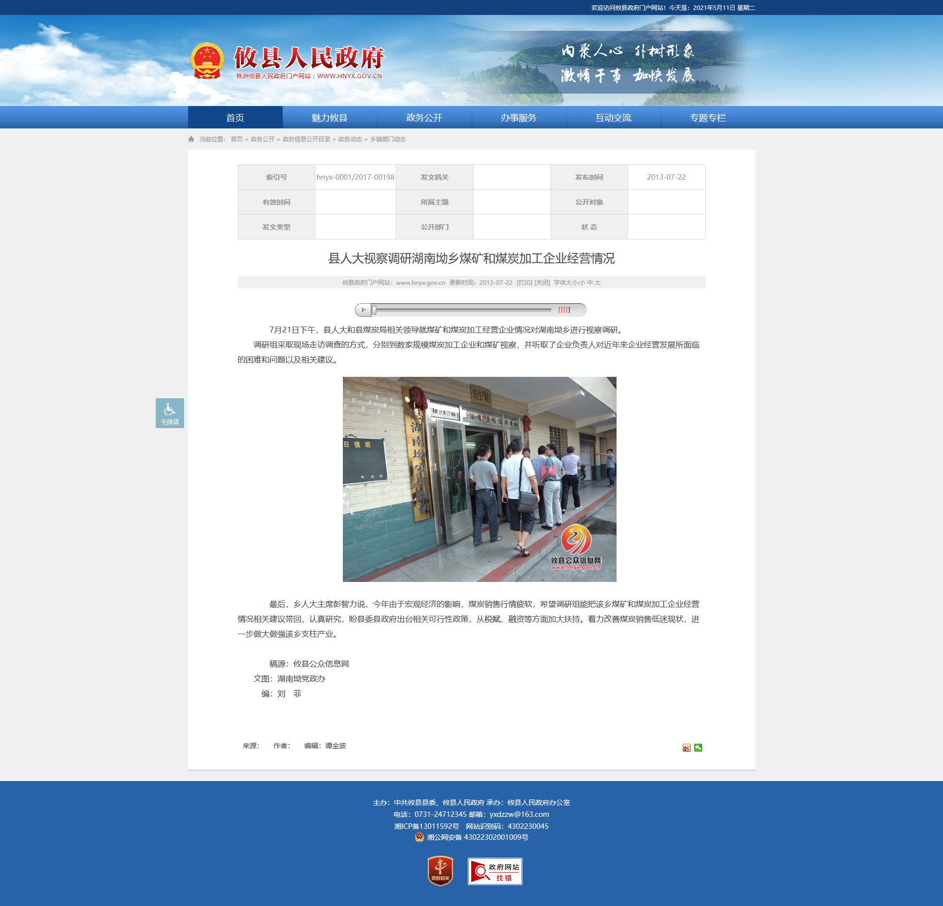 7月21日下午,县人大和县煤炭局相关领导就煤矿和煤炭加工经营企业情况对湖南坳乡进行视察调研。