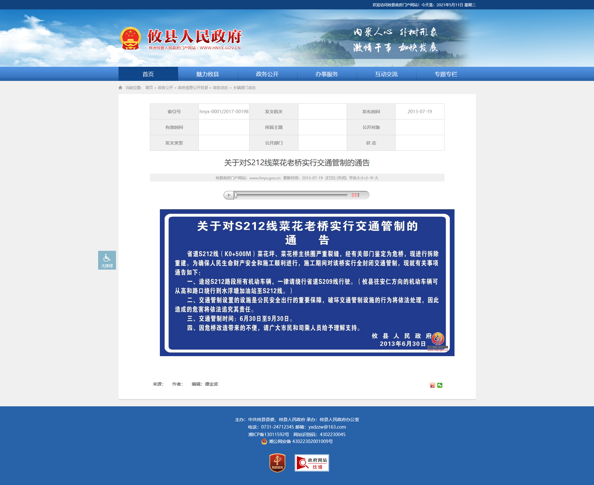 关于对S212线菜花老桥实行交通管制的通告
