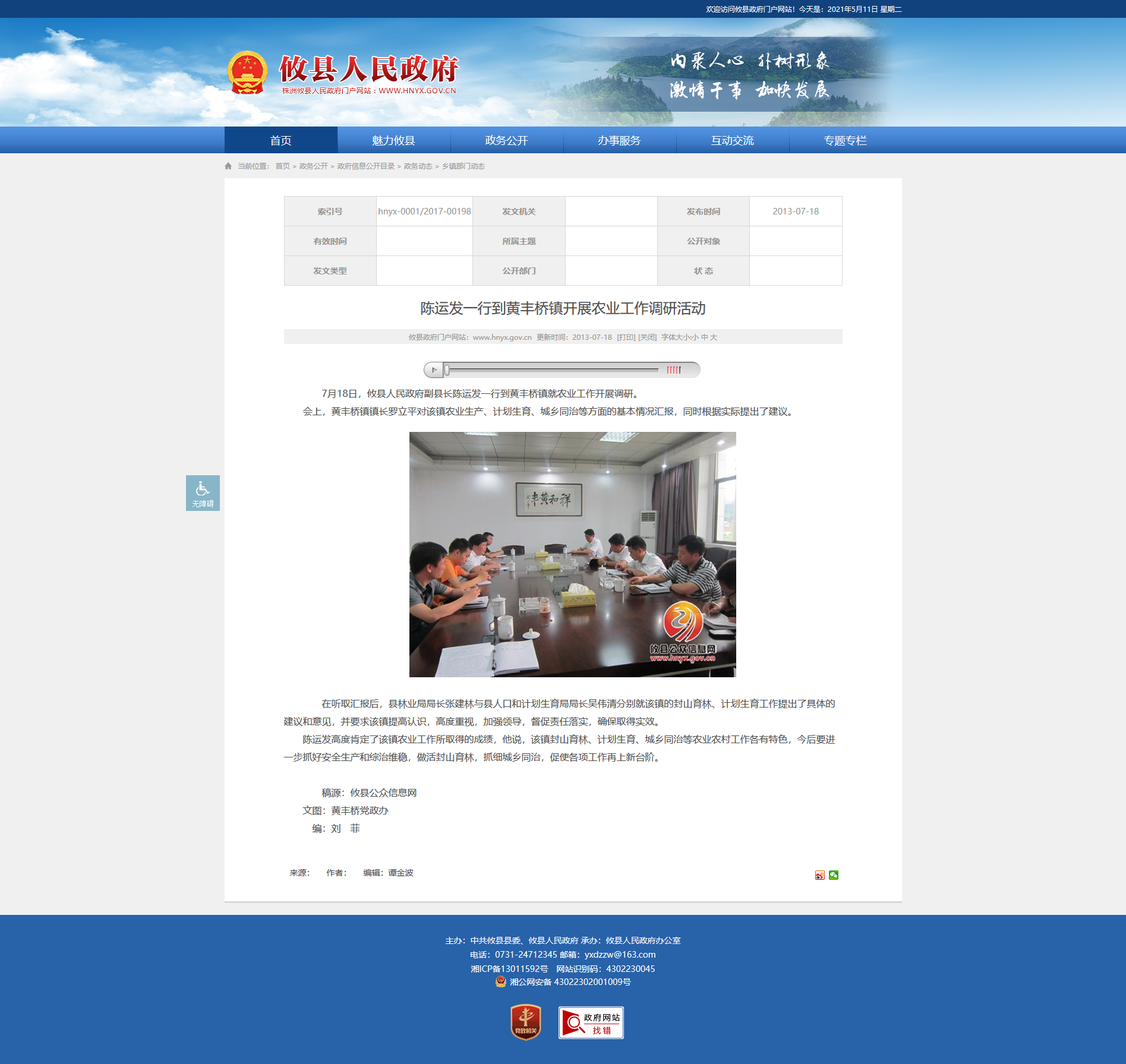 7月18日,攸县人民政府副县长陈运发一行到黄丰桥镇就农业工作开展调研。