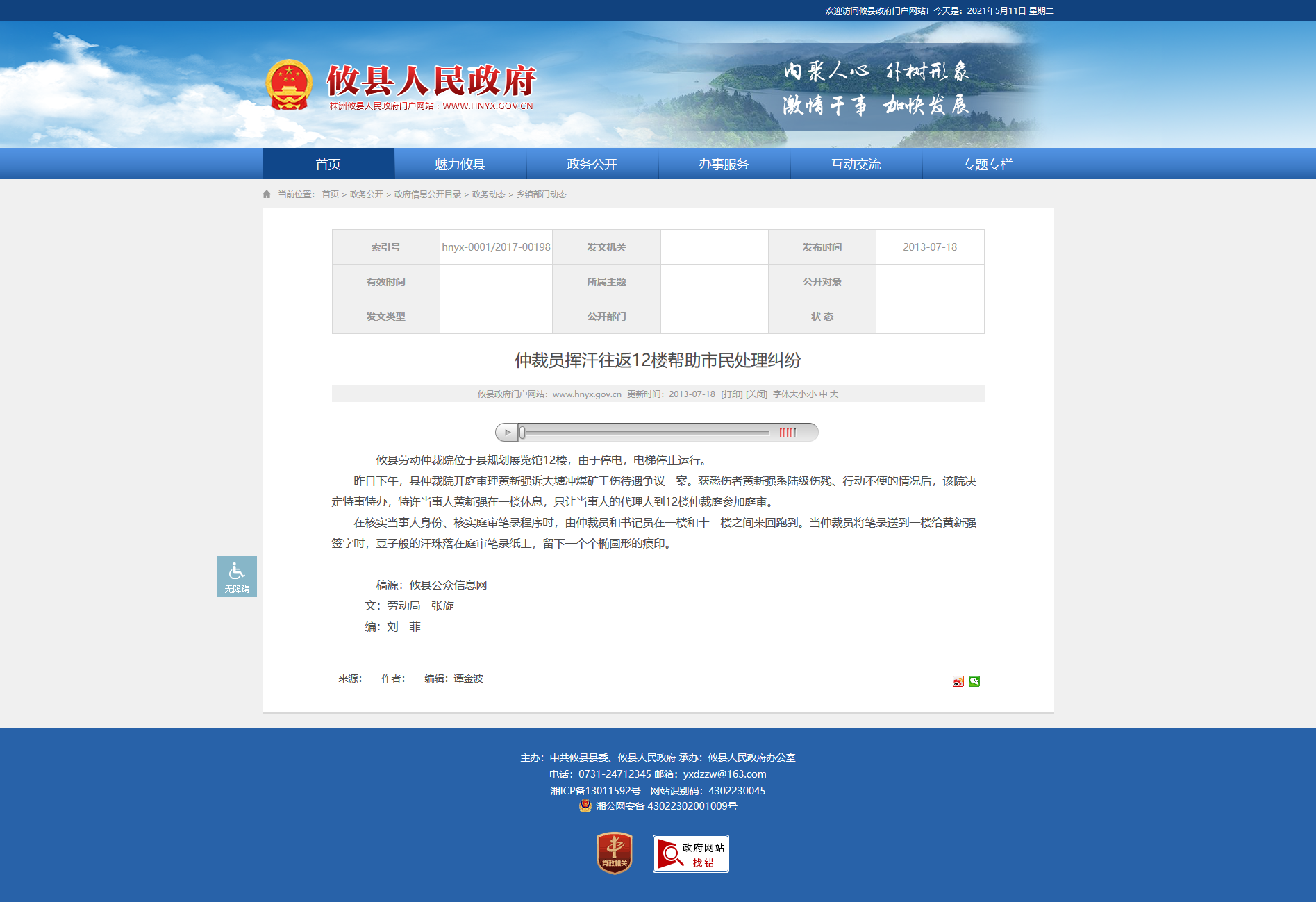 昨日下午,县仲裁院开庭审理黄新强诉大塘冲煤矿工伤待遇争议一案。获悉伤者黄新强系陆级伤残、行动不便的情况后,该院决定特事特办,特许当事人黄新强在一楼休息,只让当事人的代理人到12楼仲裁庭参加庭审。