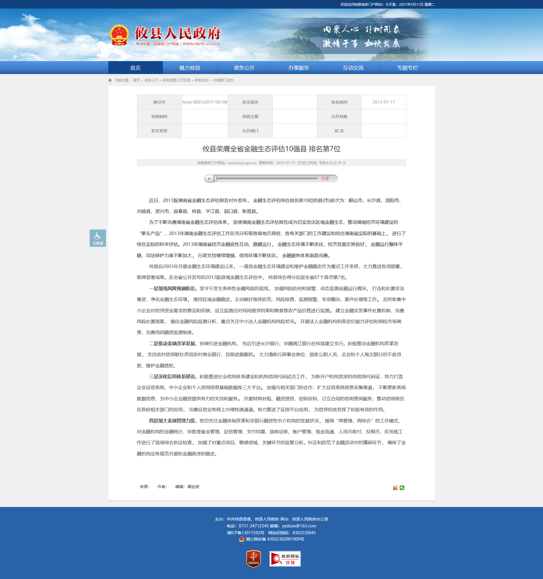 攸县自2003年开展金融生态环境建设以来,一直将金融生态环境建设和维护金融稳定作为重点工作来抓,大力推进各项部署,取得显著成果。在全省公开发布的2013版县域金融生态评估中,攸县综合得分位居全省87个县市第7名。