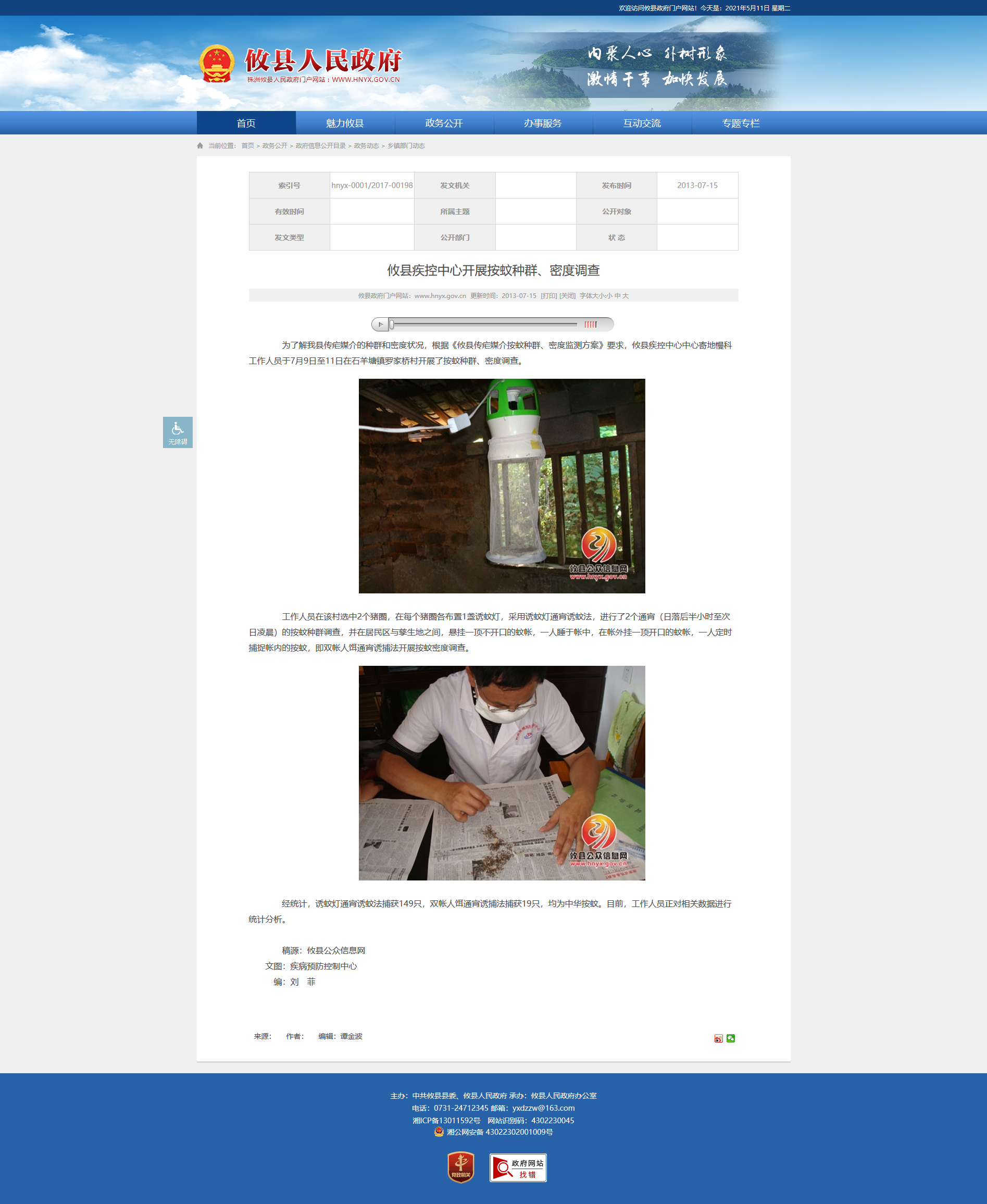 为了解我县传疟媒介的种群和密度状况,根据《攸县传疟媒介按蚊种群、密度监测方案》要求,攸县疾控中心中心寄地慢科工作人员于7月9日至11日在石羊塘镇罗家桥村开展了按蚊种群、密度调查。
