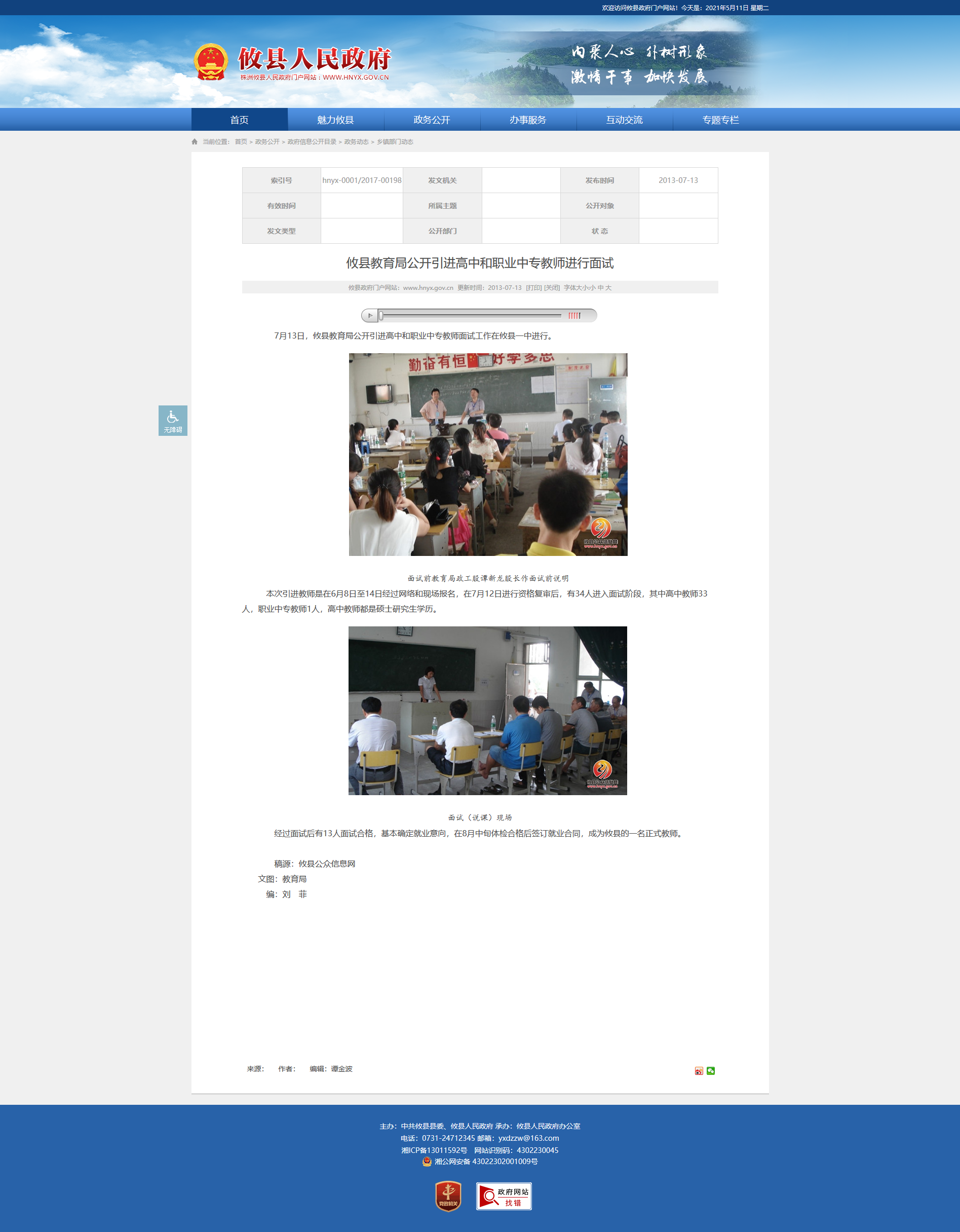 7月13日,攸县教育局公开引进高中和职业中专教师面试工作在攸县一中进行。