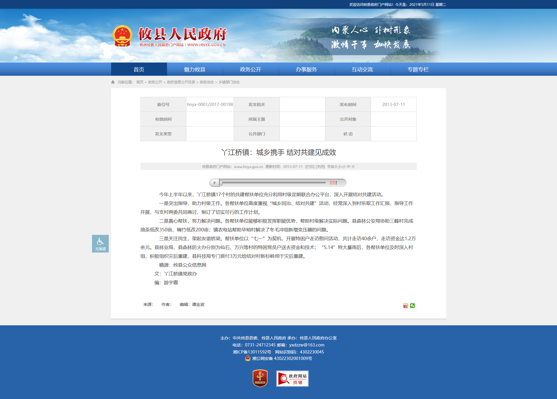 二是真心帮扶,努力解决问题。各帮扶单位能够积极发挥职能优势,帮助村级解决实际问题。县森林公安局协助三峰村完成油茶低改350亩、楠竹低改200亩;镇农电站帮助华裕村解决了冬毛冲组新增变压器的问题。