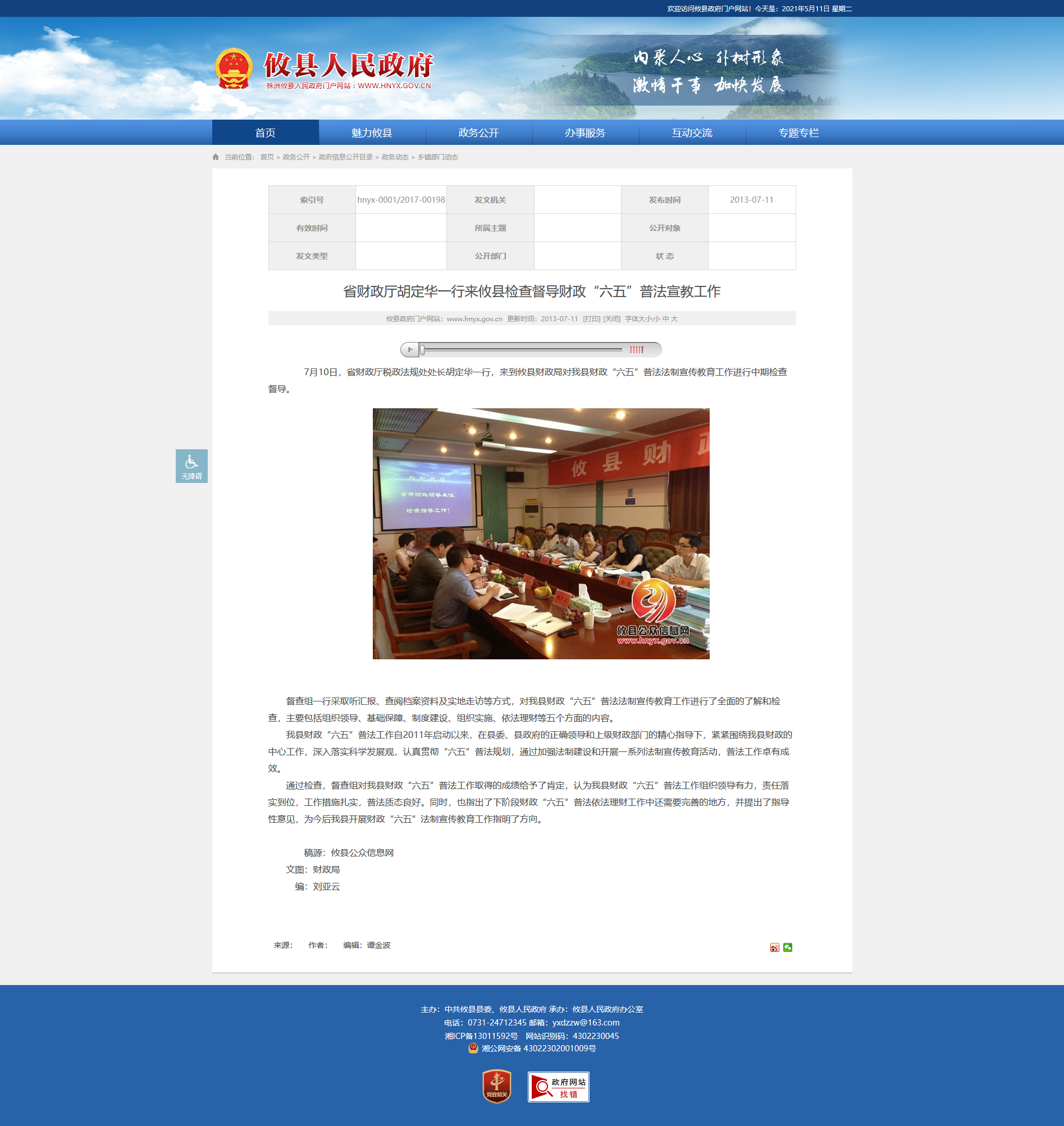 7月10日,省财政厅税政法规处处长胡定华一行,来到攸县财政局对我县财政“六五”普法法制宣传教育工作进行中期检查督导。