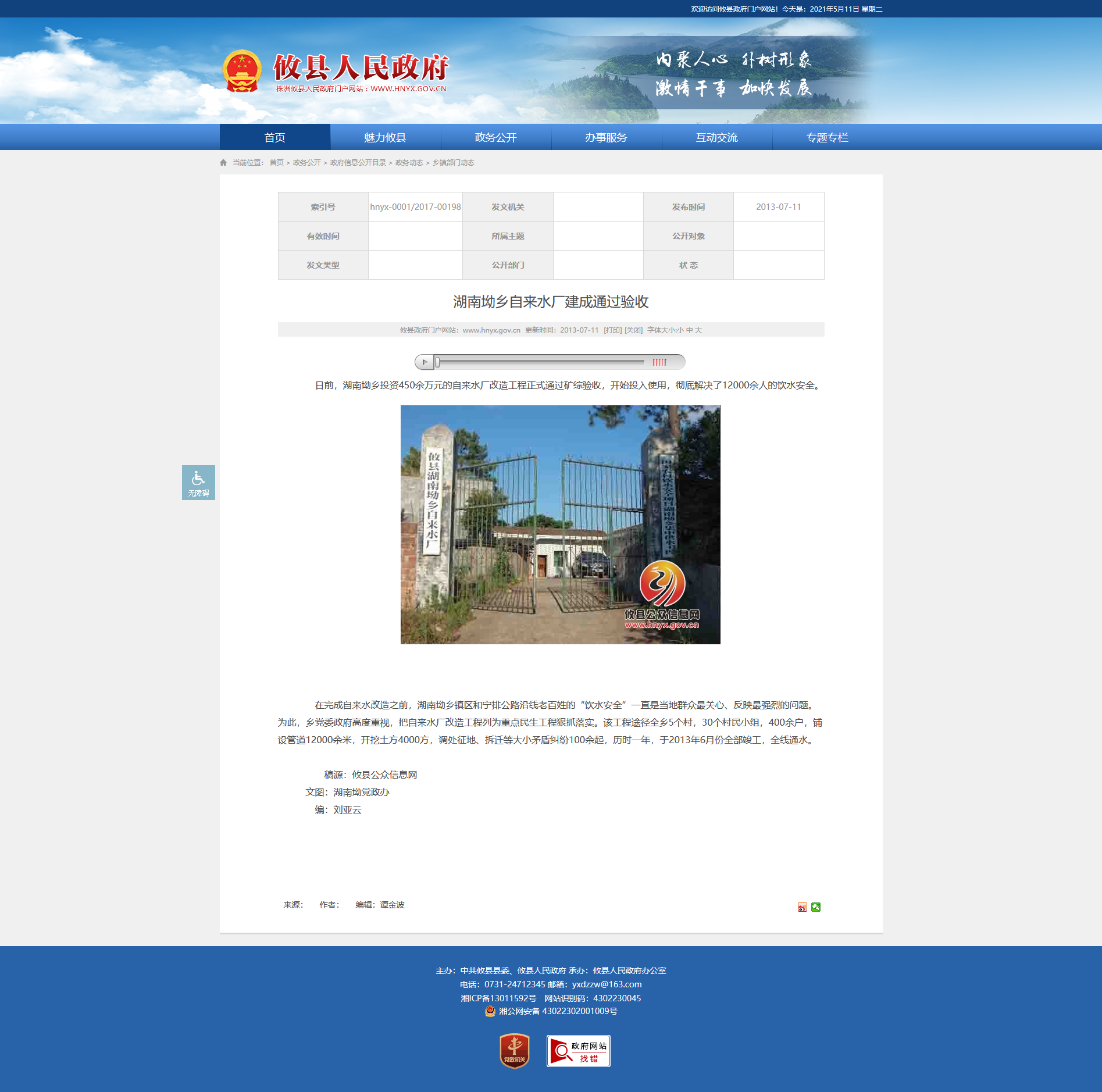 日前,湖南坳乡投资450余万元的自来水厂改造工程正式通过矿综验收,开始投入使用,彻底解决了12000余人的饮水安全。
