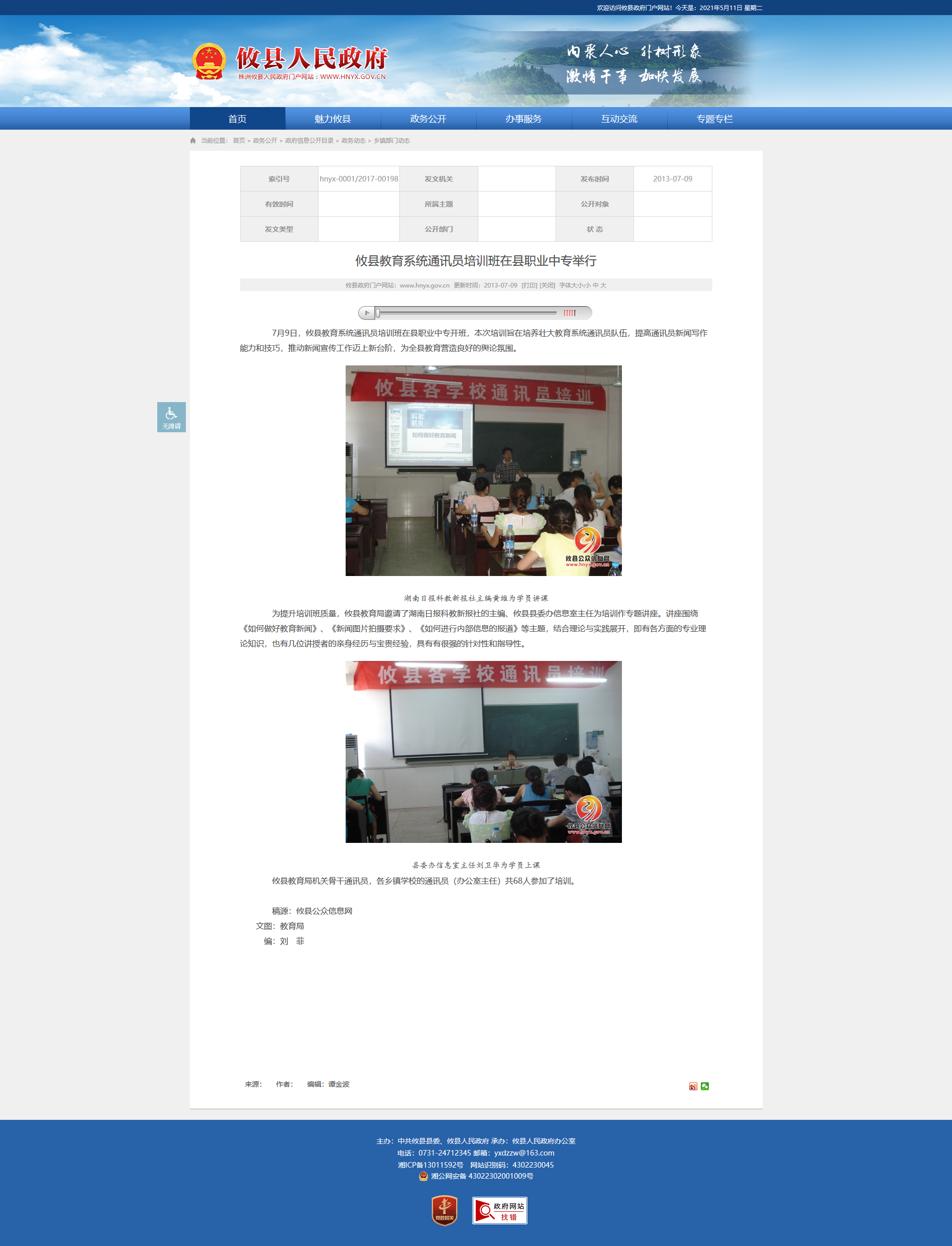 7月9日,攸县教育系统通讯员培训班在县职业中专开班,本次培训旨在培养壮大教育系统通讯员队伍,提高通讯员新闻写作能力和技巧,推动新闻宣传工作迈上新台阶,为全县教育营造良好的舆论氛围。