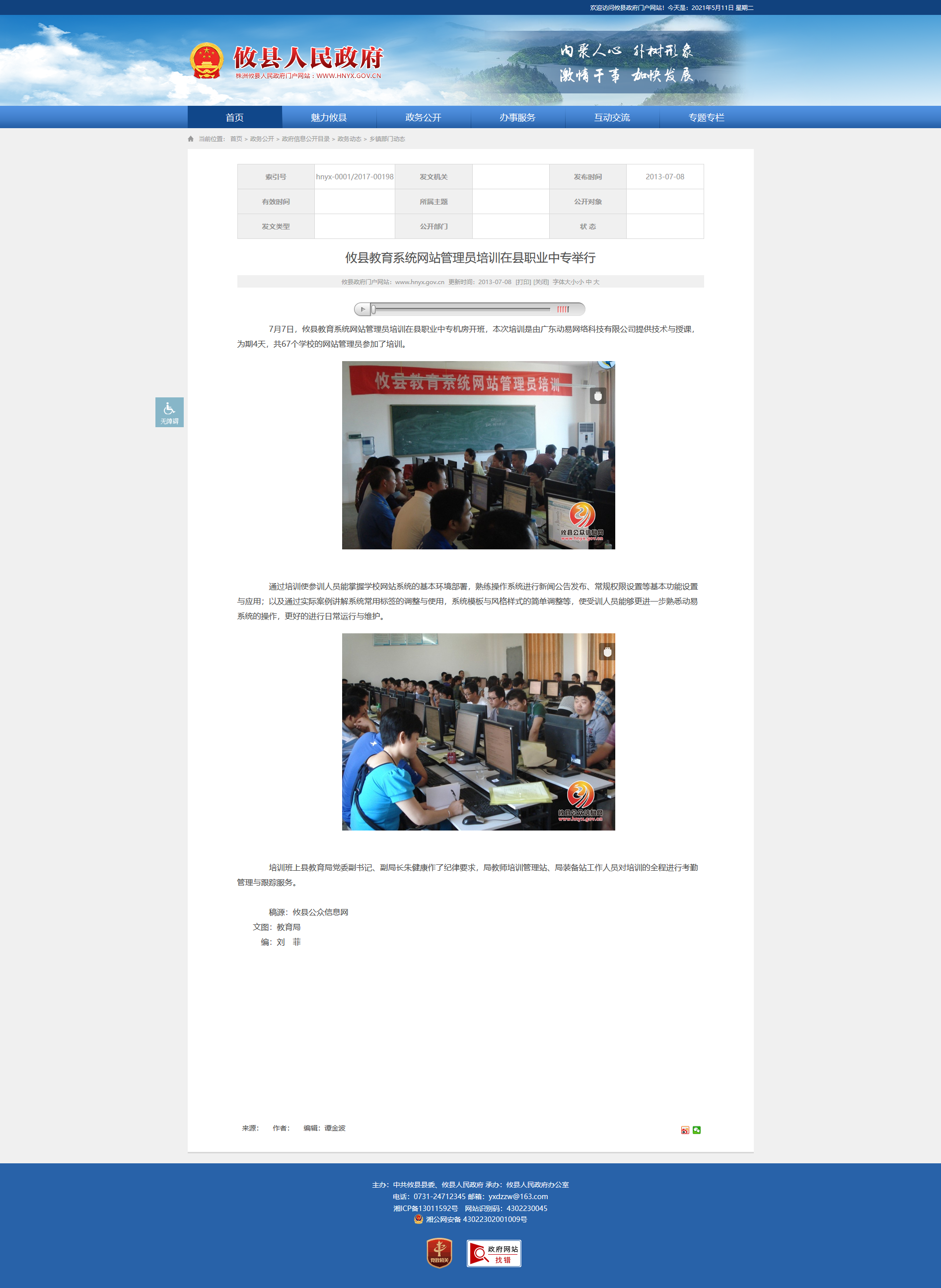 7月7日,攸县教育系统网站管理员培训在县职业中专机房开班,本次培训是由广东动易网络科技有限公司提供技术与授课,为期4天,共67个学校的网站管理员参加了培训。
