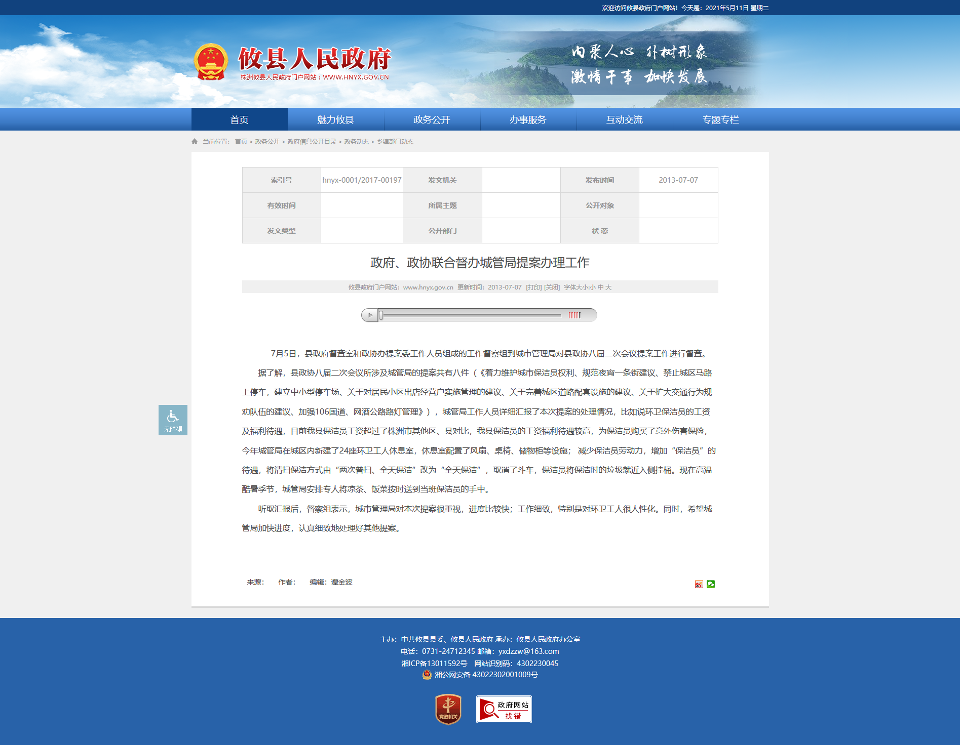 7月5日,县政府督查室和政协办提案委工作人员组成的工作督察组到城市管理局对县政协八届二次会议提案工作进行督查。
