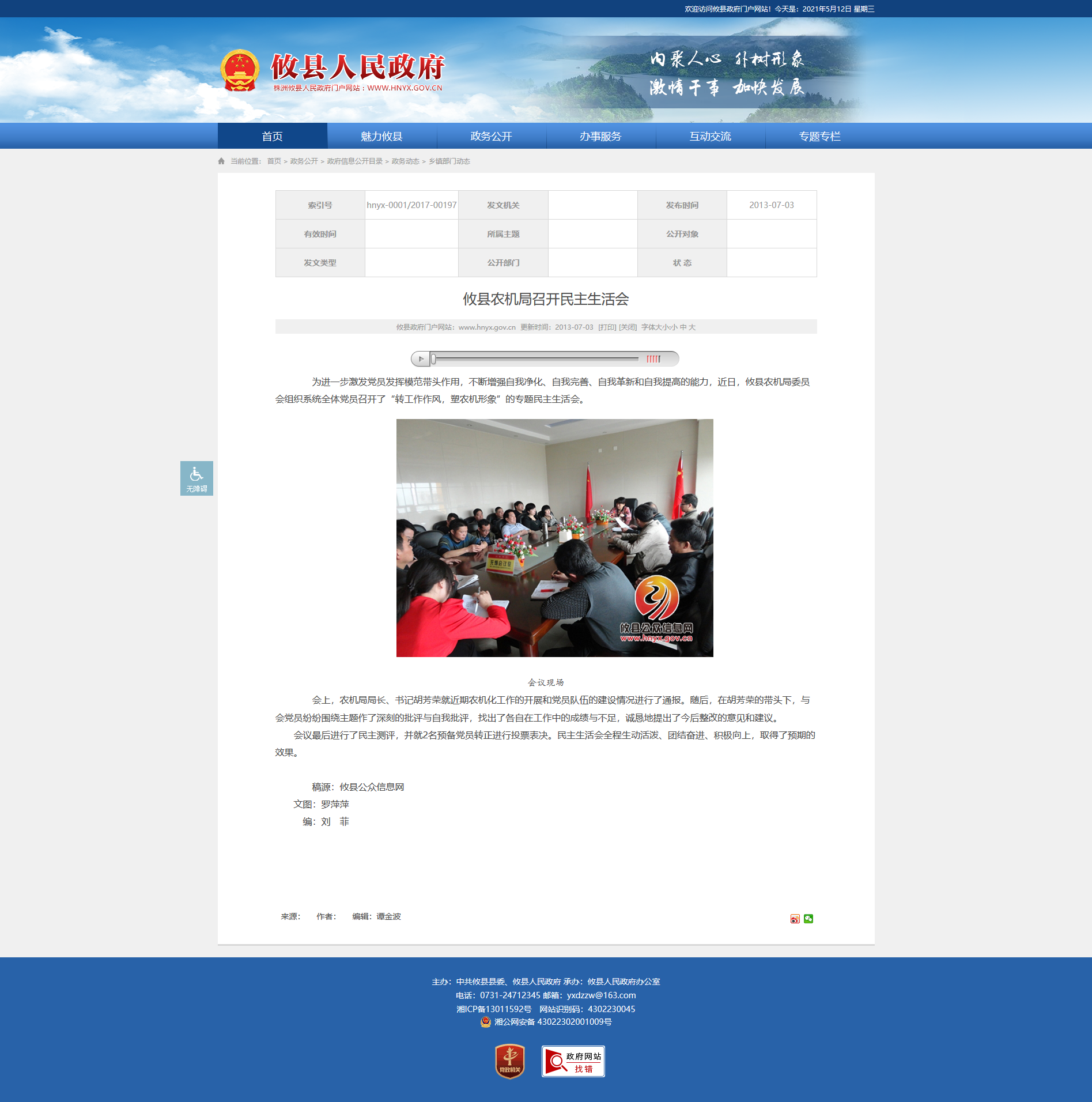 会上,农机局局长、书记胡芳荣就近期农机化工作的开展和党员队伍的建设情况进行了通报。随后,在胡芳荣的带头下,与会党员纷纷围绕主题作了深刻的批评与自我批评,找出了各自在工作中的成绩与不足,诚恳地提出了今后整改的意见和建议。