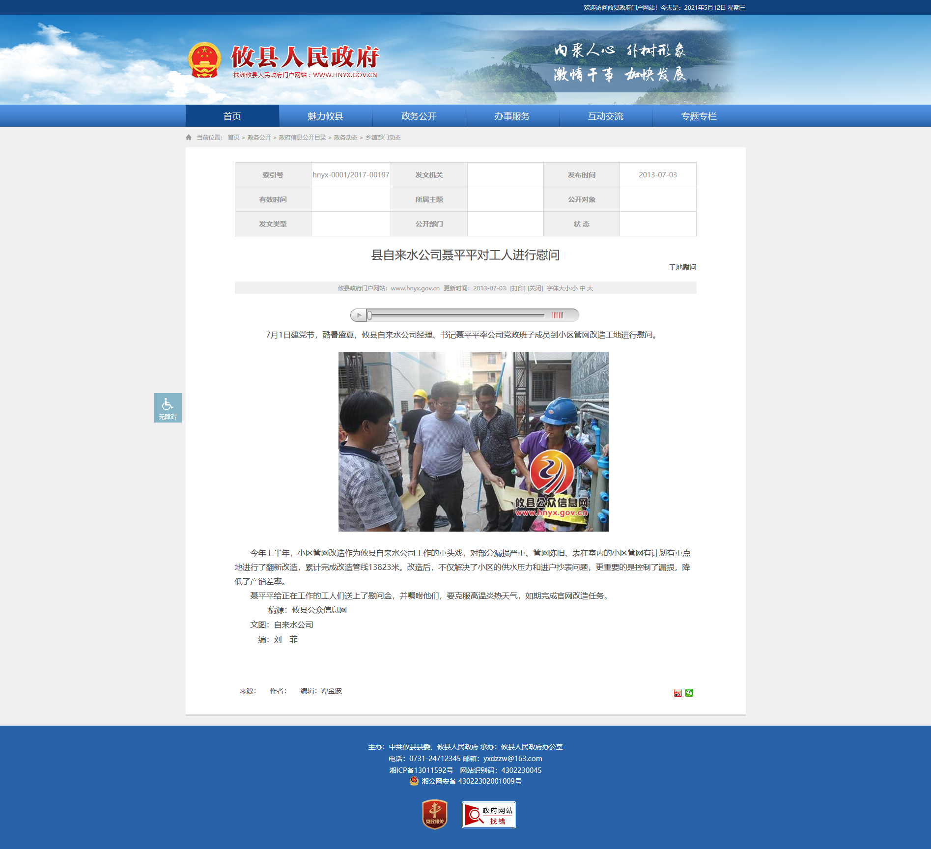 7月1日建党节,酷暑盛夏,攸县自来水公司经理、书记聂平平率公司党政班子成员到小区管网改造工地进行慰问。