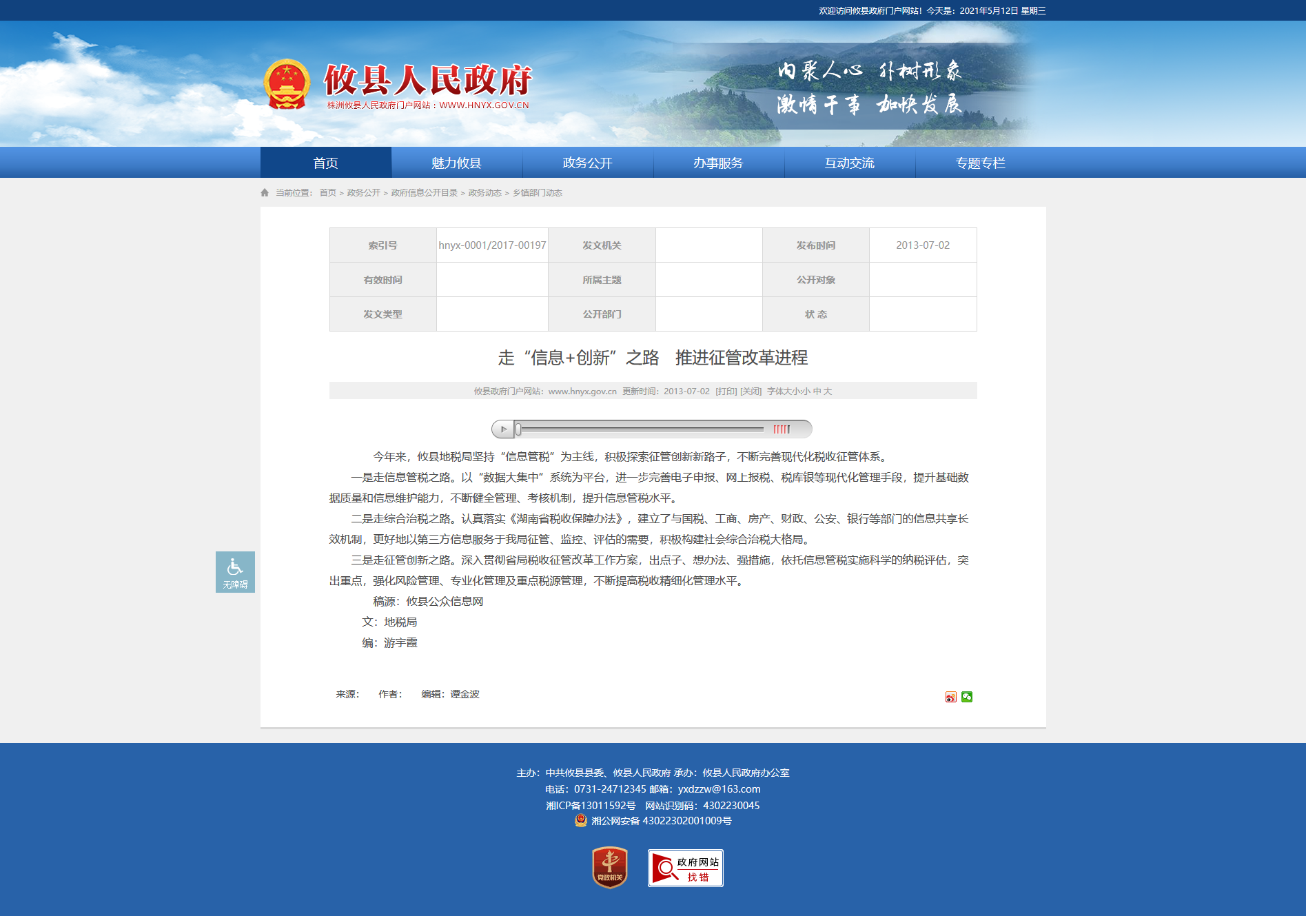 今年来,攸县地税局坚持“信息管税”为主线,积极探索征管创新新路子,不断完善现代化税收征管体系。