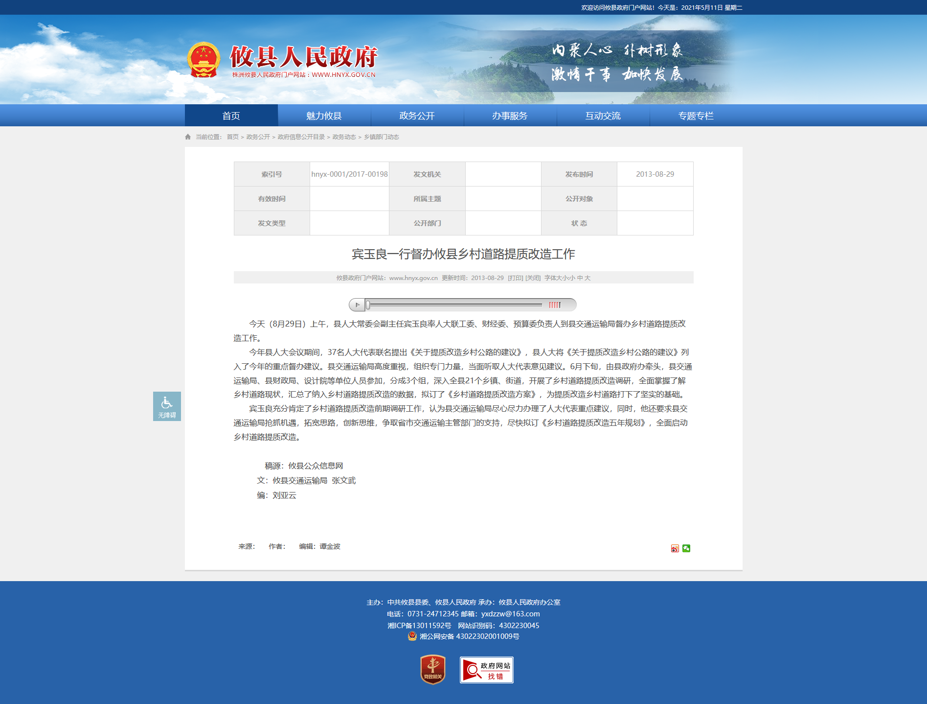 今年县人大会议期间,37名人大代表联名提出《关于提质改造乡村公路的建议》,县人大将《关于提质改造乡村公路的建议》列入了今年的重点督办建议。县交通运输局高度重视,组织专门力量,当面听取人大代表意见建议。6月下旬,由县政府办牵头,县交通运输局、县财政局、设计院等单位人员参加,分成3个组,深入全县21个乡镇、街道,开展了乡村道路提质改造调研,全面掌握了解乡村道路现状,汇总了纳入乡村道路提质改造的数据,拟订了《乡村道路提质改造方案》,为提质改造乡村道路打下了坚实的基础。