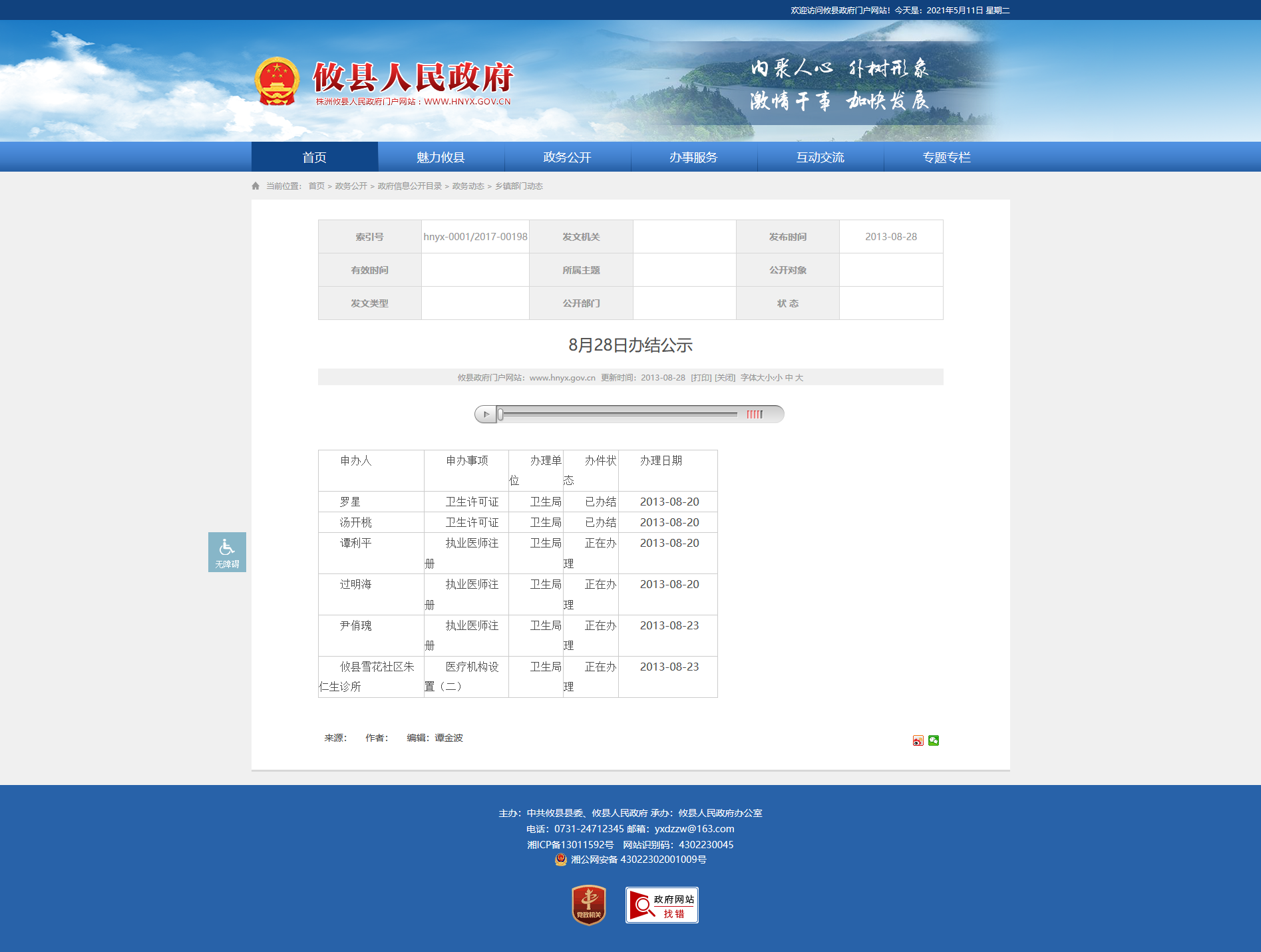 | 谭利平 | 执业医师注册 | 卫生局 | 正在办理 | 2013-08-20 |