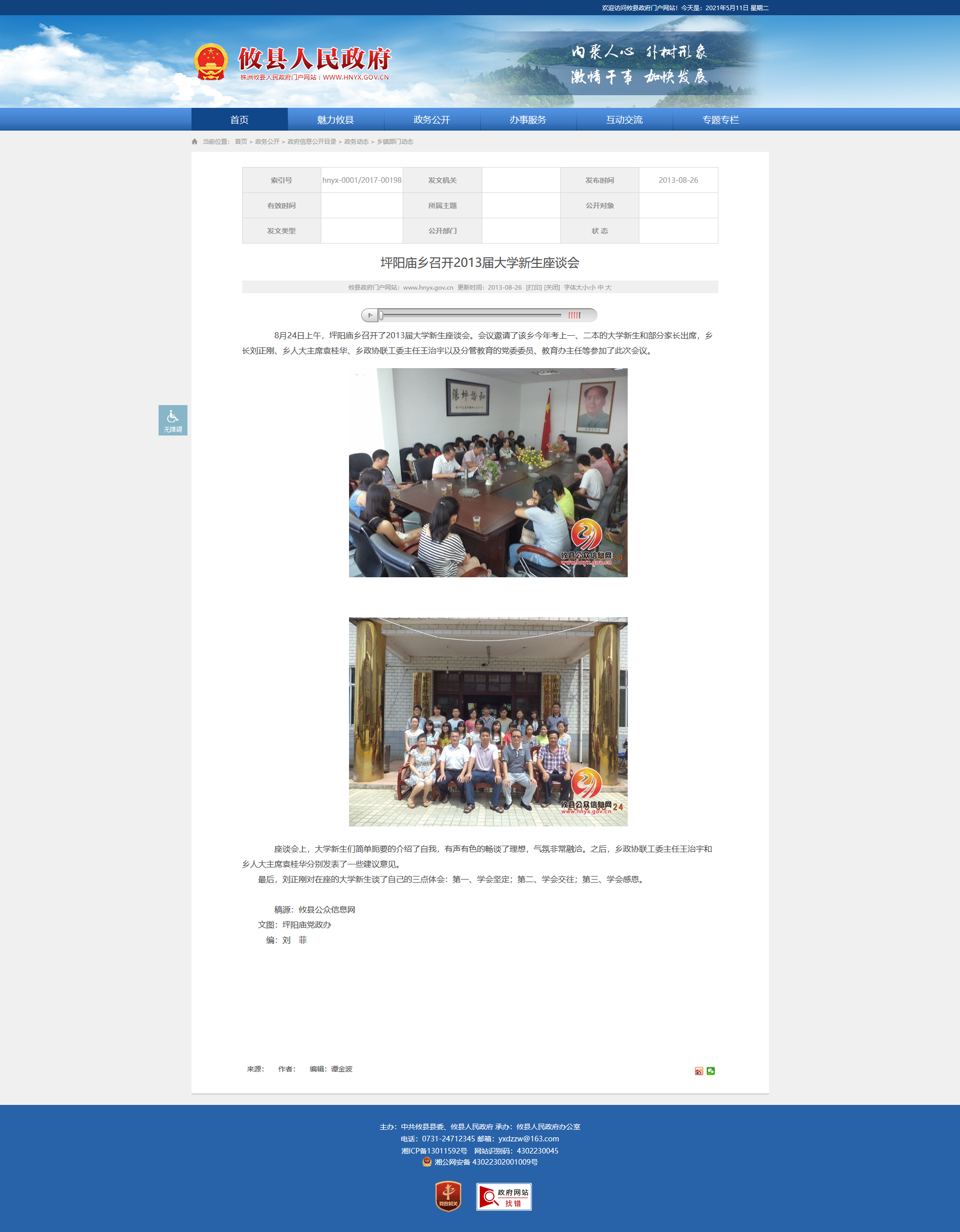 8月24日上午,坪阳庙乡召开了2013届大学新生座谈会。会议邀请了该乡今年考上一、二本的大学新生和部分家长出席,乡长刘正刚、乡人大主席袁桂华、乡政协联工委主任王治宇以及分管教育的党委委员、教育办主任等参加了此次会议。