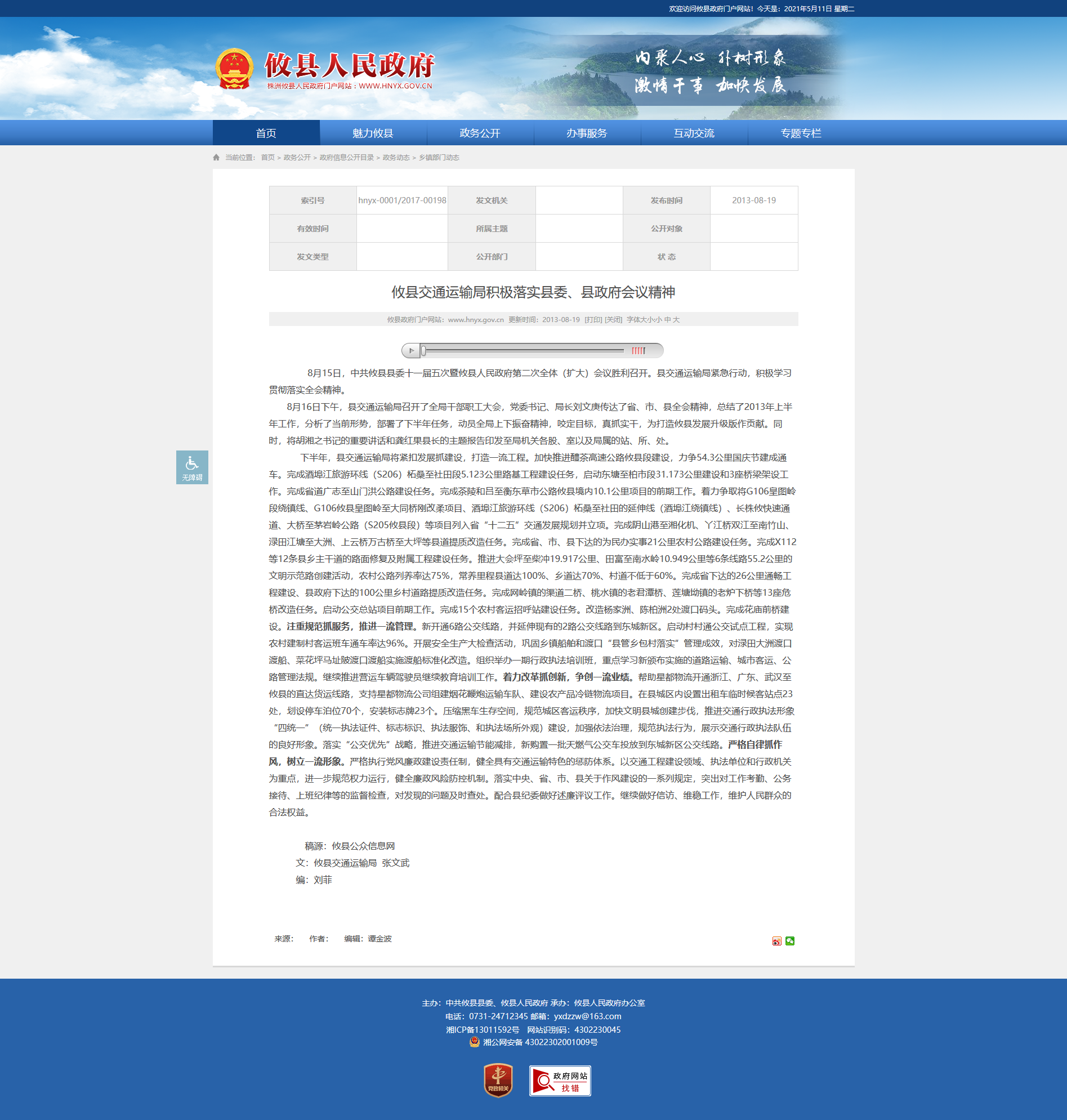 8月16日下午,县交通运输局召开了全局干部职工大会,党委书记、局长刘文庚传达了省、市、县全会精神,总结了2013年上半年工作,分析了当前形势,部署了下半年任务,动员全局上下振奋精神,咬定目标,真抓实干,为打造攸县发展升级版作贡献。同时,将胡湘之书记的重要讲话和龚红果县长的主题报告印发至局机关各股、室以及局属的站、所、处。