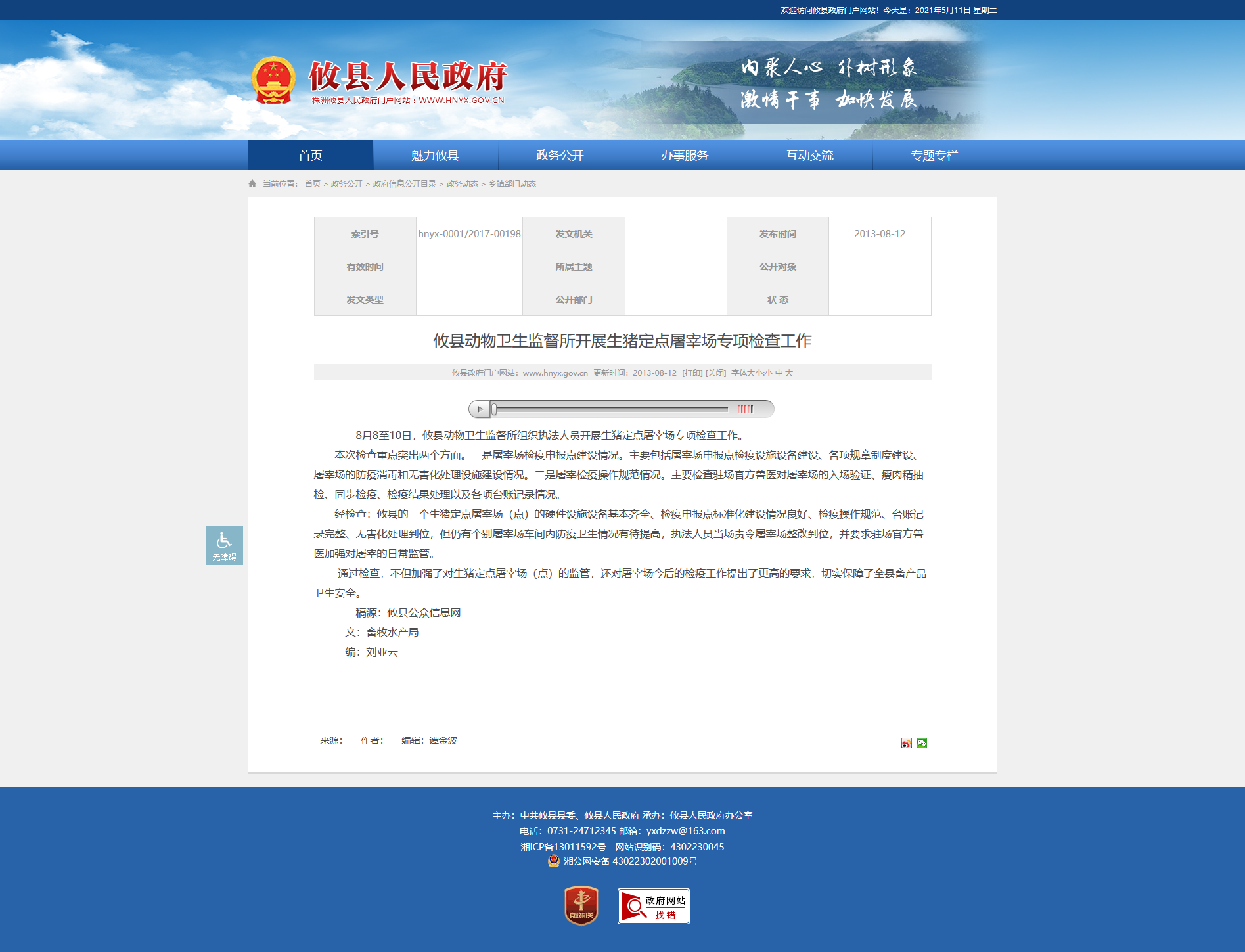 8月8至10日,攸县动物卫生监督所组织执法人员开展生猪定点屠宰场专项检查工作。