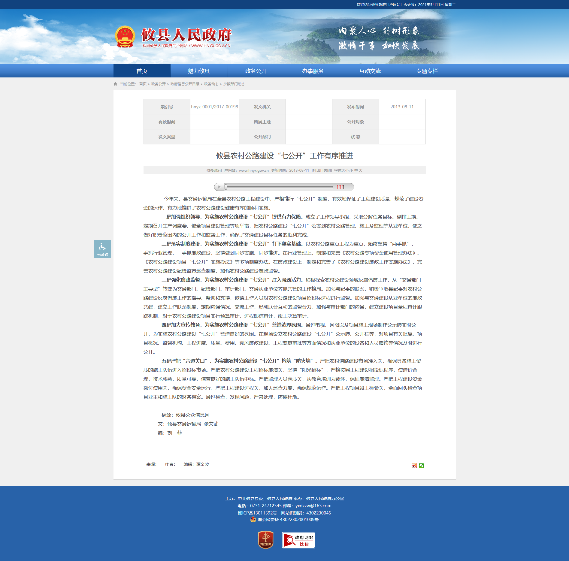 今年来,县交通运输局在全县农村公路工程建设中,严格推行“七公开”制度,有效地保证了工程建设质量,规范了建设资金的运作,有力地推进了农村公路建设健康有序的顺利实施。