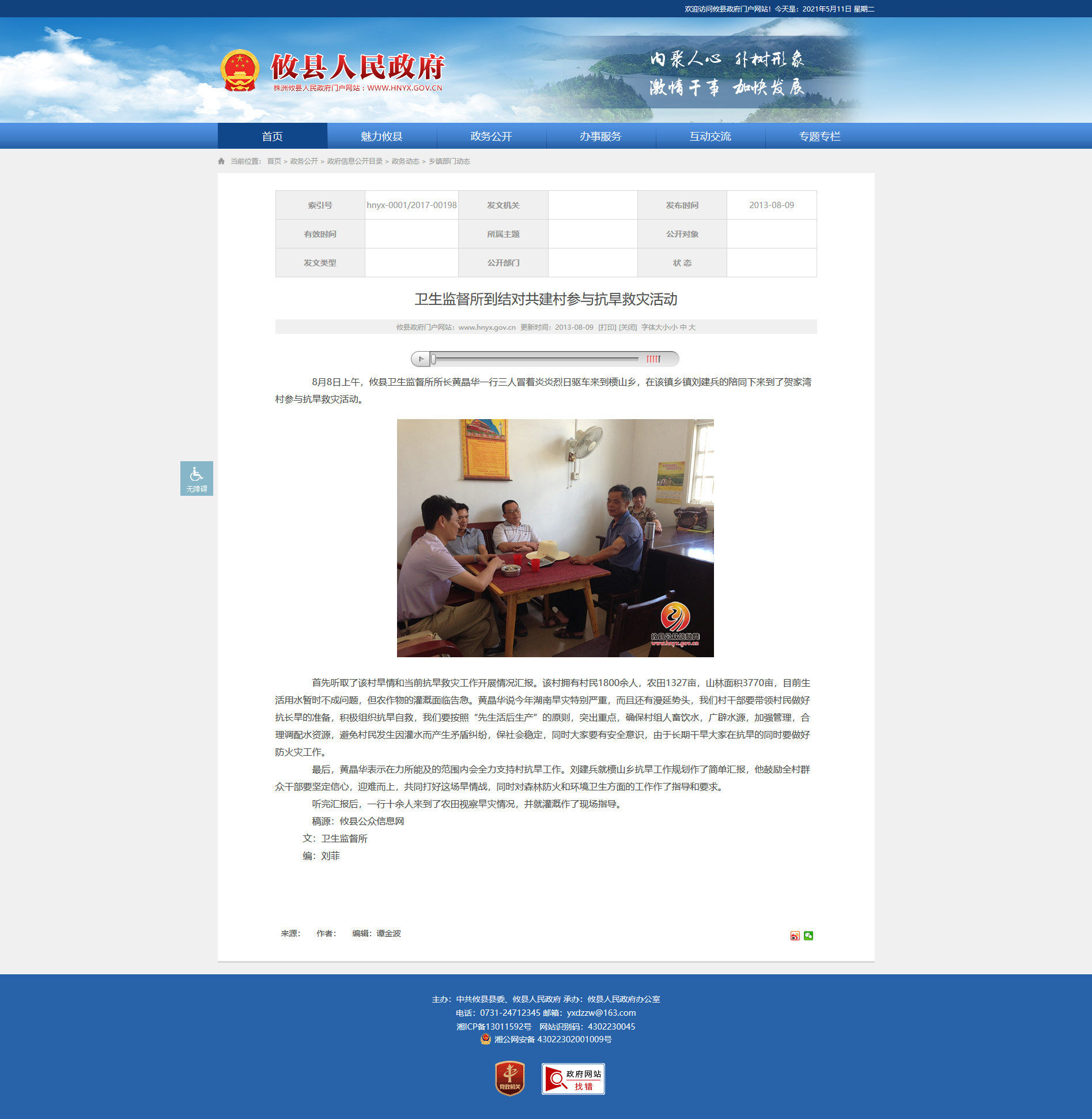 8月8日上午,攸县卫生监督所所长黄晶华一行三人冒着炎炎烈日驱车来到槚山乡,在该镇乡镇刘建兵的陪同下来到了贺家湾村参与抗旱救灾活动。