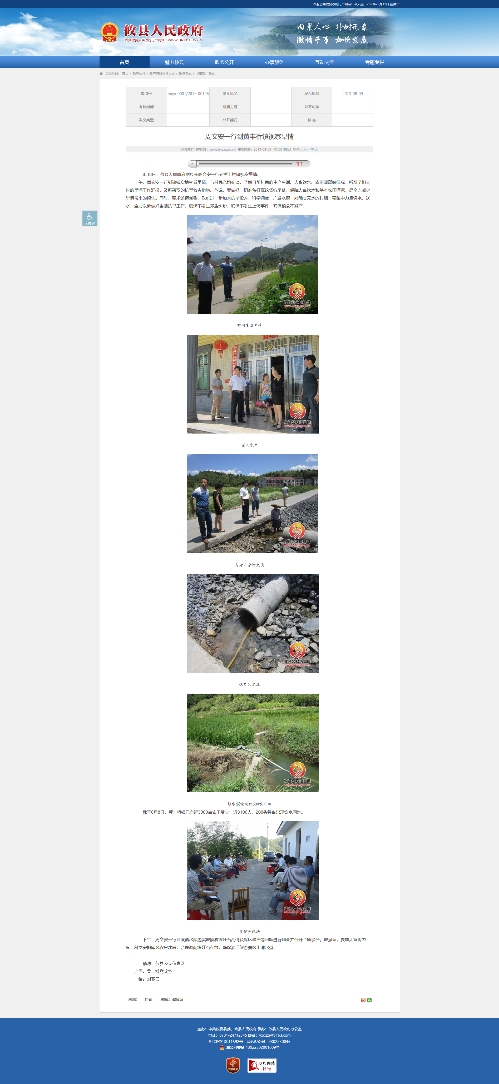 8月8日,攸县人民政府副县长周文安一行到黄丰桥镇视察旱情。