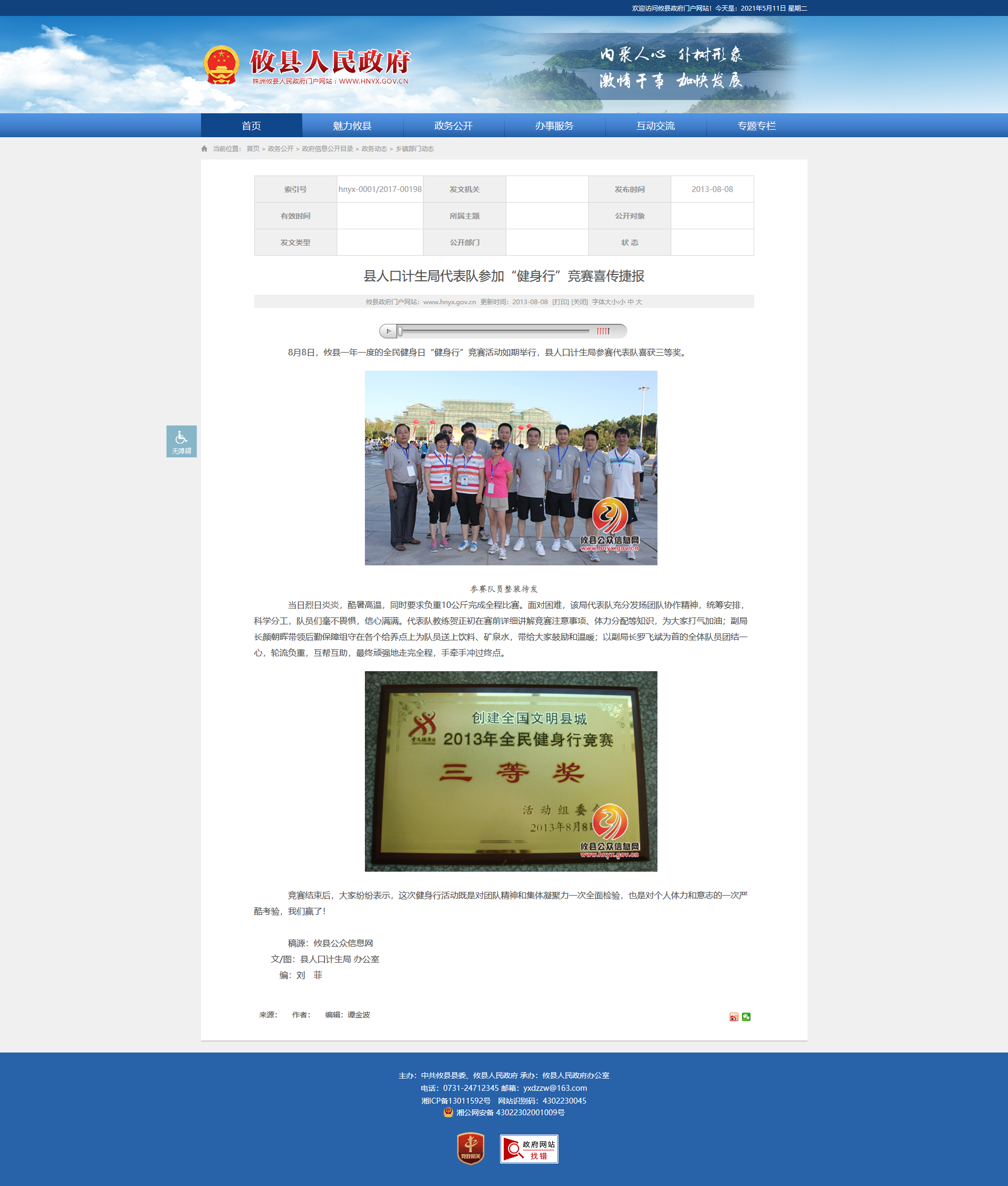 8月8日,攸县一年一度的全民健身日“健身行”竞赛活动如期举行,县人口计生局参赛代表队喜获三等奖。