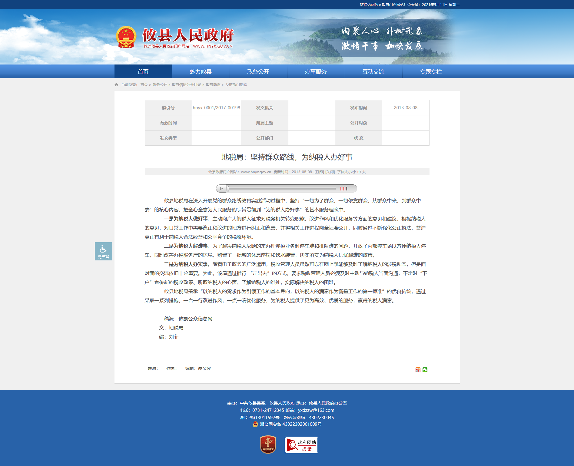攸县地税局秉承“以纳税人的需求作为引领工作的基本导向,以纳税人的满意作为衡量工作的第一标准”的优良传统,通过采取一系列措施,一言一行改进作风,一点一滴优化服务,为纳税人提供了更为高效、优质的服务,赢得纳税人满意。