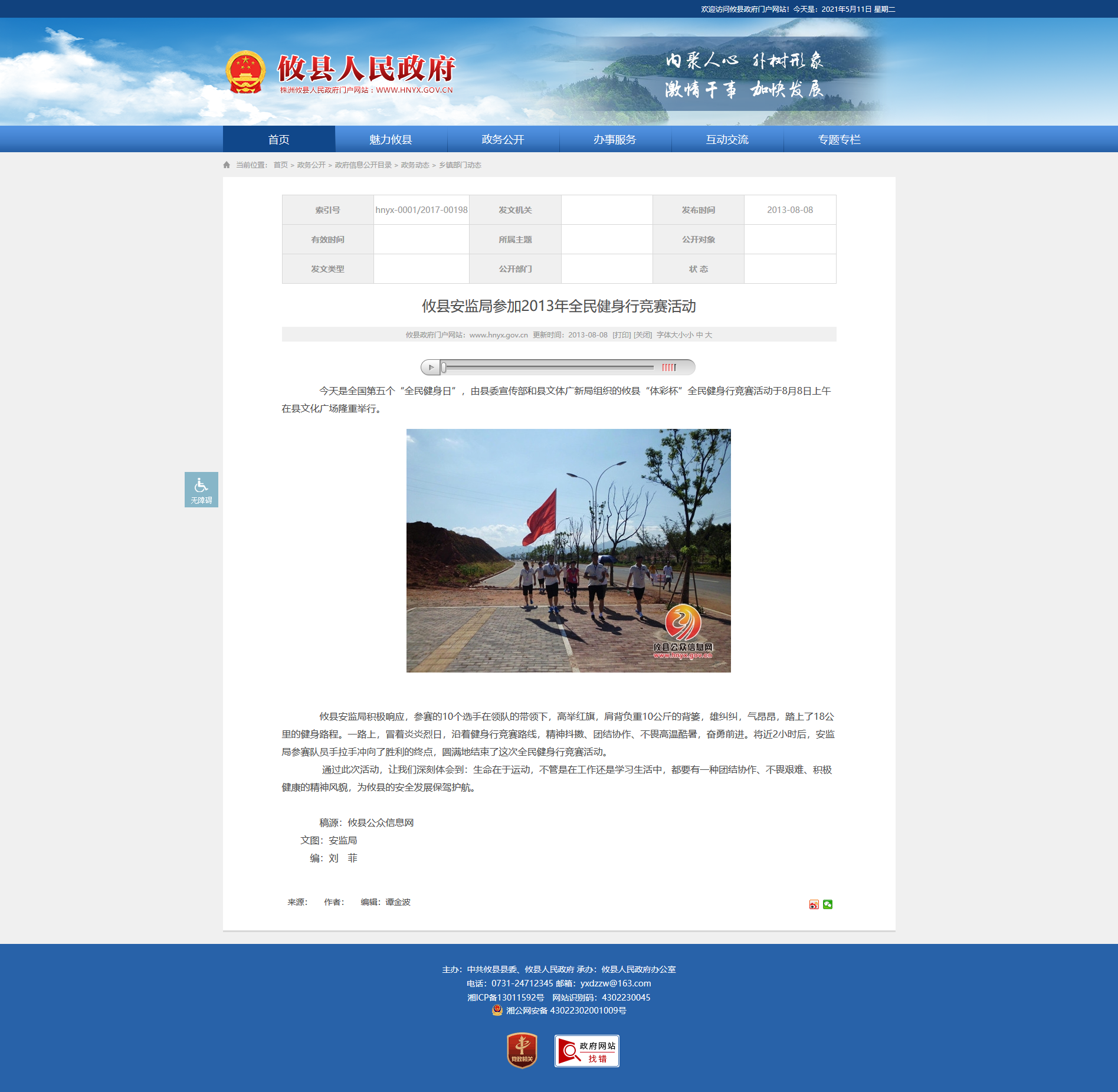 攸县安监局积极响应,参赛的10个选手在领队的带领下,高举红旗,肩背负重10公斤的背篓,雄纠纠,气昂昂,踏上了18公里的健身路程。一路上,冒着炎炎烈日,沿着健身行竞赛路线,精神抖擞、团结协作、不畏高温酷暑,奋勇前进。将近2小时后,安监局参赛队员手拉手冲向了胜利的终点,圆满地结束了这次全民健身行竞赛活动。