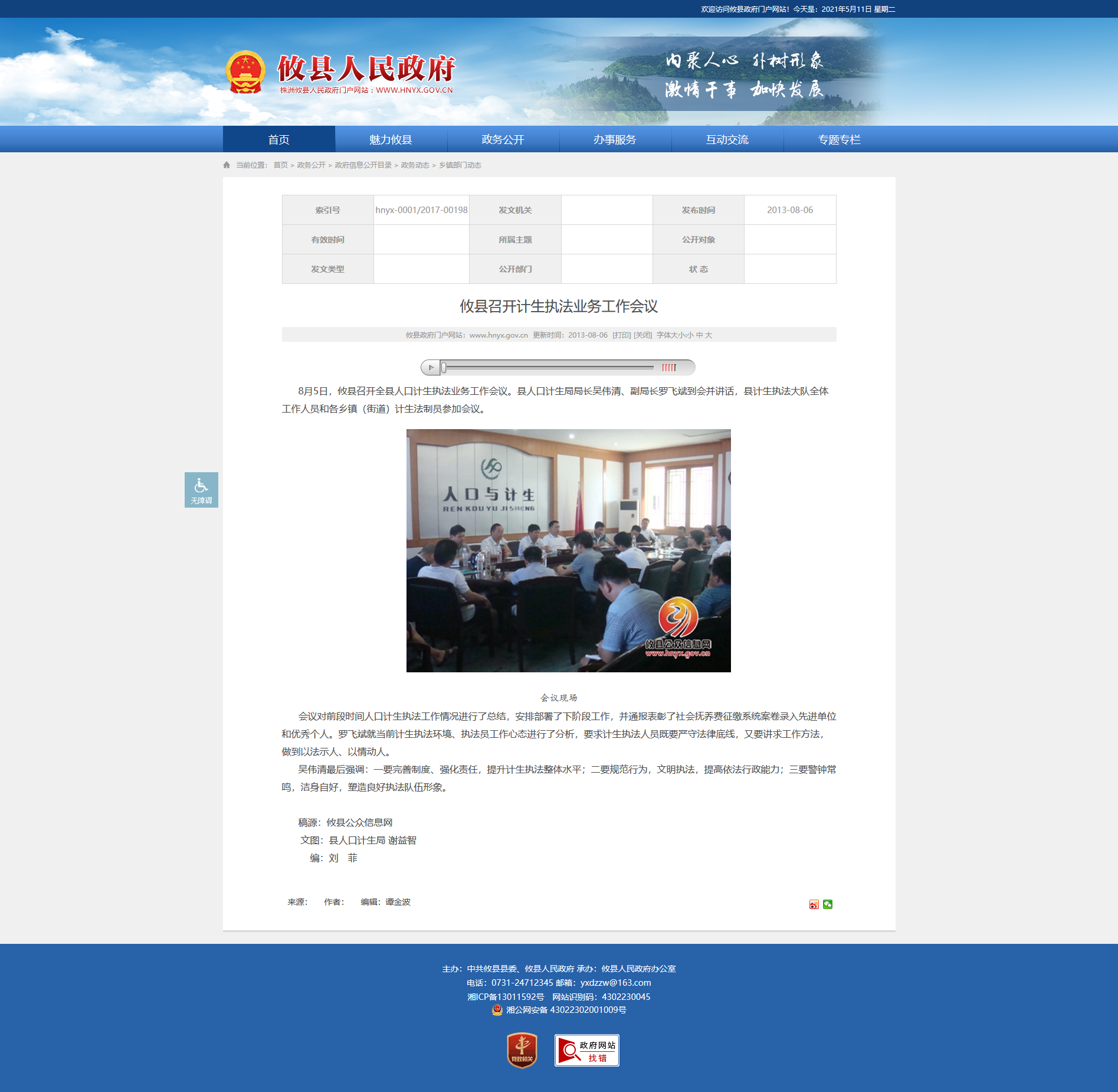 8月5日,攸县召开全县人口计生执法业务工作会议。县人口计生局局长吴伟清、副局长罗飞斌到会并讲话,县计生执法大队全体工作人员和各乡镇(街道)计生法制员参加会议。