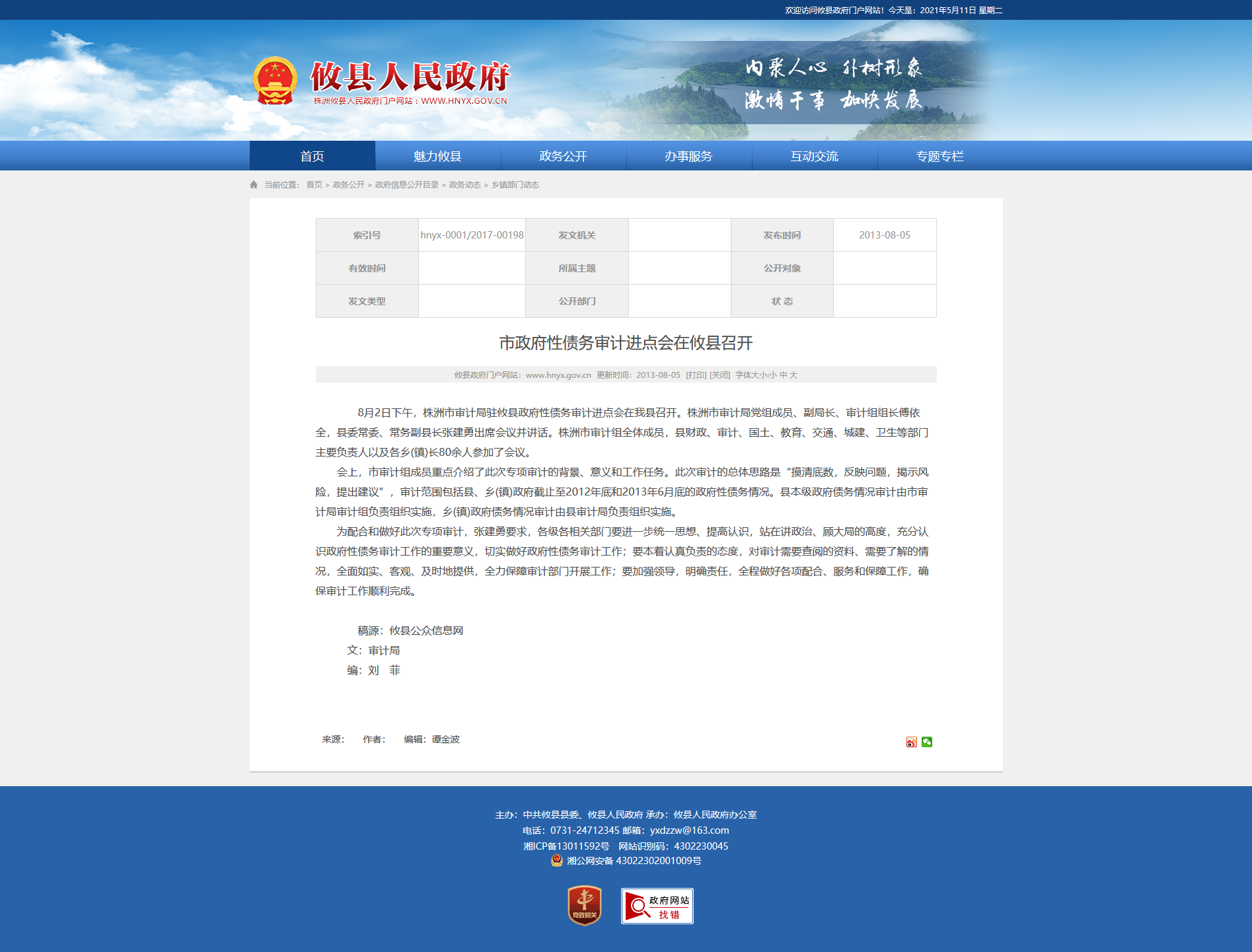 会上,市审计组成员重点介绍了此次专项审计的背景、意义和工作任务。此次审计的总体思路是“摸清底数,反映问题,揭示风险,提出建议”,审计范围包括县、乡(镇)政府截止至2012年底和2013年6月底的政府性债务情况。县本级政府债务情况审计由市审计局审计组负责组织实施,乡(镇)政府债务情况审计由县审计局负责组织实施。