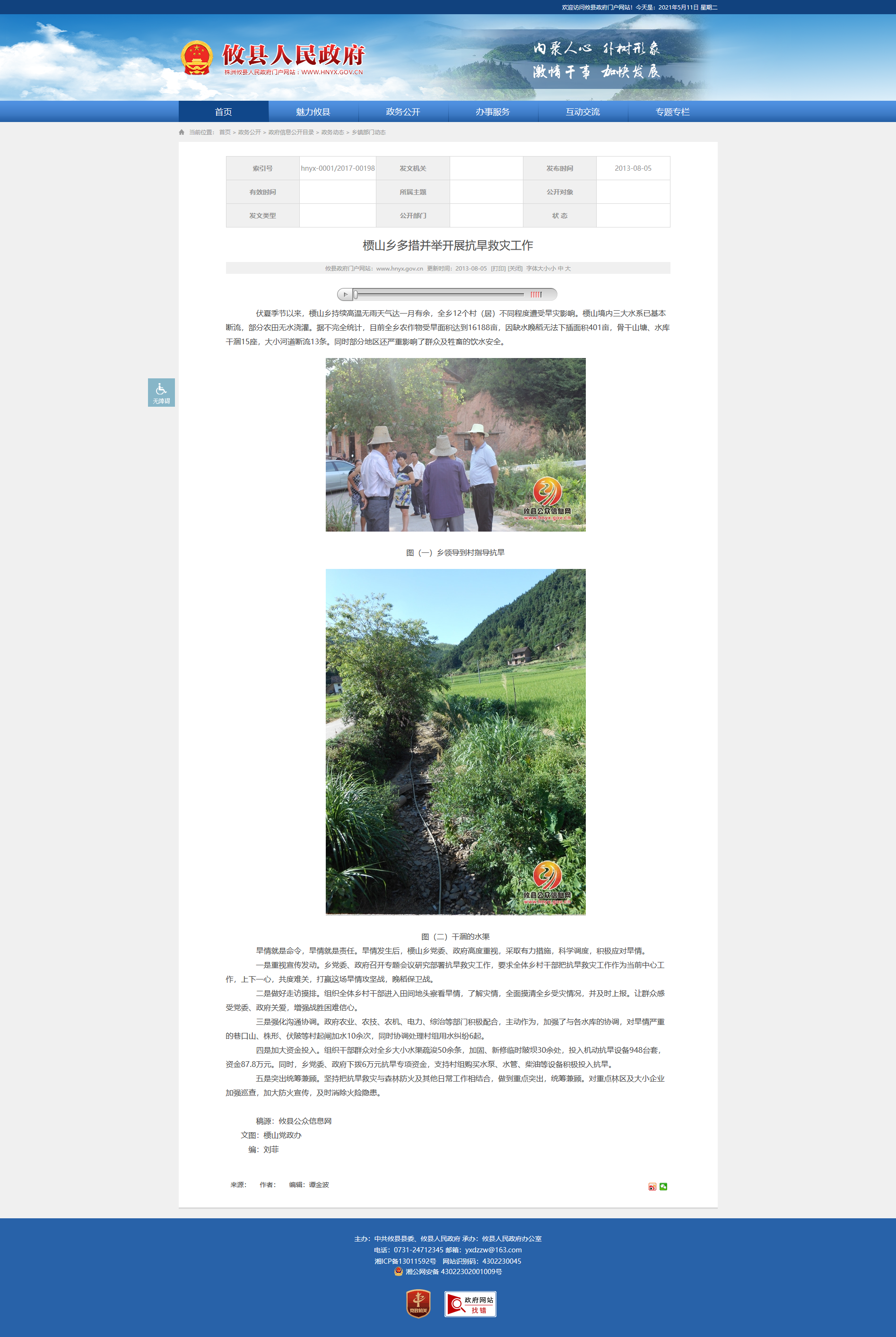 旱情就是命令,旱情就是责任。旱情发生后,槚山乡党委、政府高度重视,采取有力措施,科学调度,积极应对旱情。