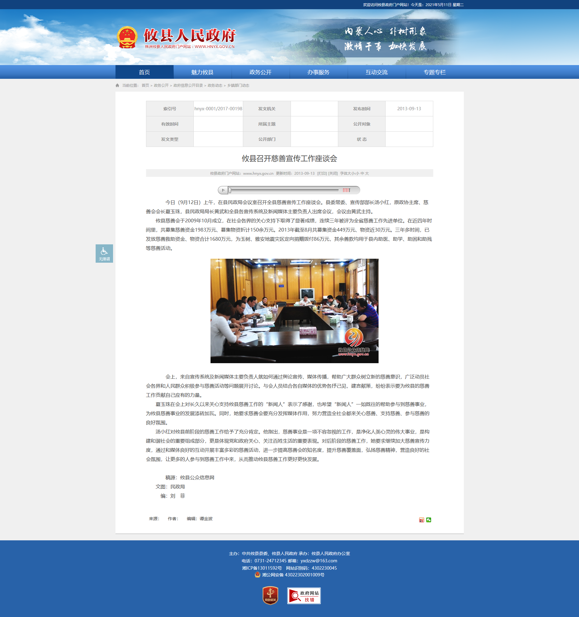 今日(9月12日)上午,在县民政局会议室召开全县慈善宣传工作座谈会。县委常委、宣传部部长汤小红,原政协主席、慈善会会长夏玉珠,县民政局局长黄武和全县各宣传系统及新闻媒体主要负责人出席会议,会议由黄武主持。