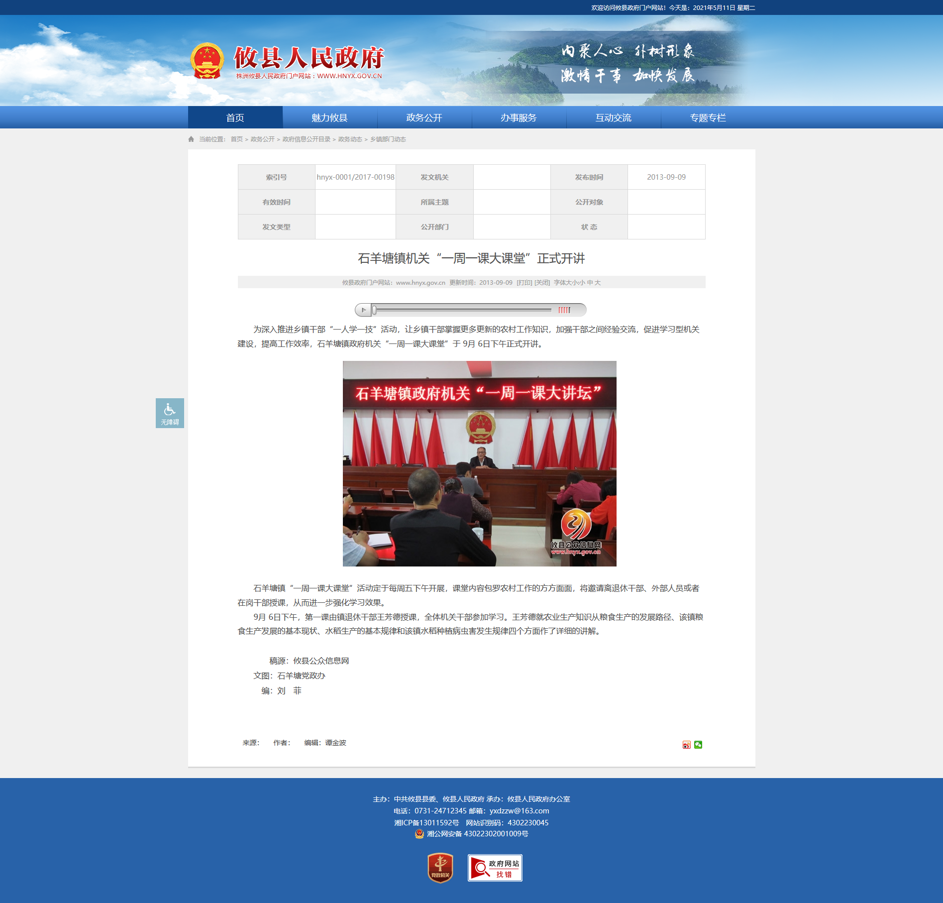 为深入推进乡镇干部“一人学一技”活动,让乡镇干部掌握更多更新的农村工作知识,加强干部之间经验交流,促进学习型机关建设,提高工作效率,石羊塘镇政府机关“一周一课大课堂”于9月6日下午正式开讲。