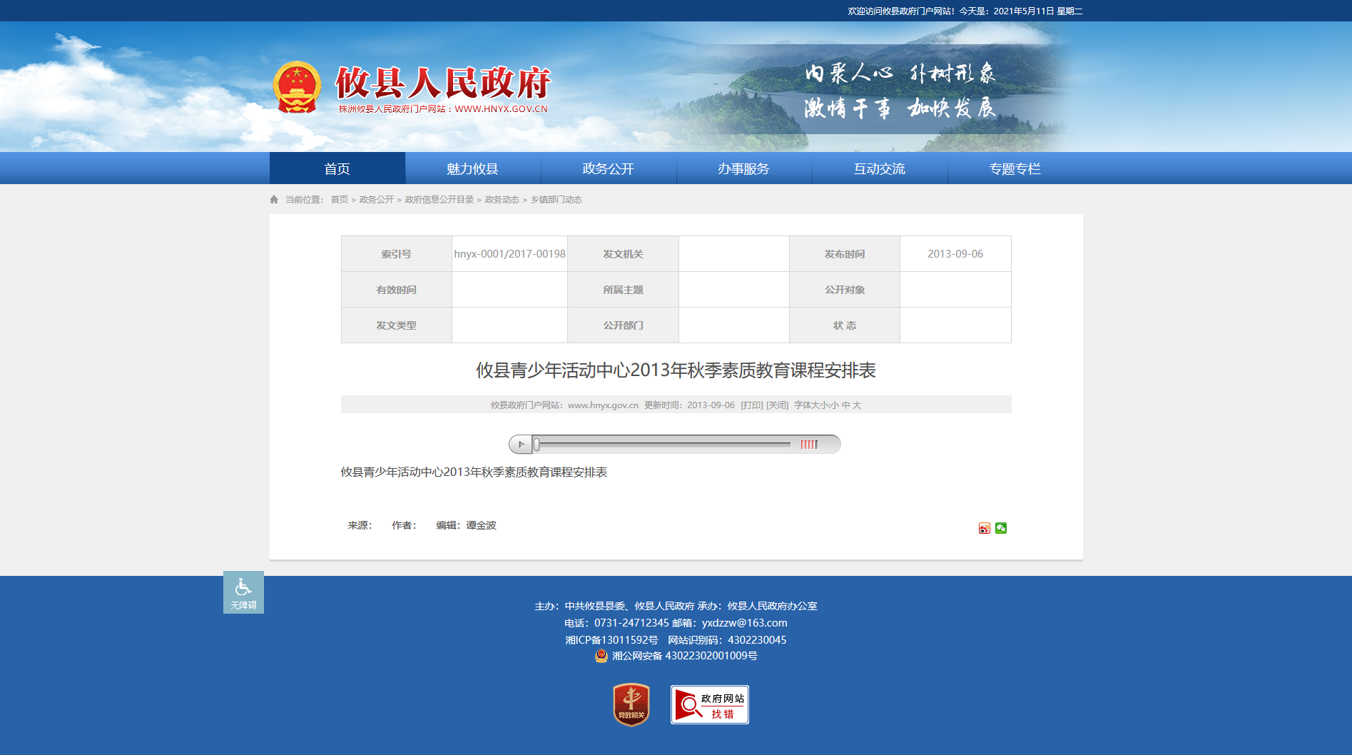 攸县青少年活动中心2013年秋季素质教育课程安排表