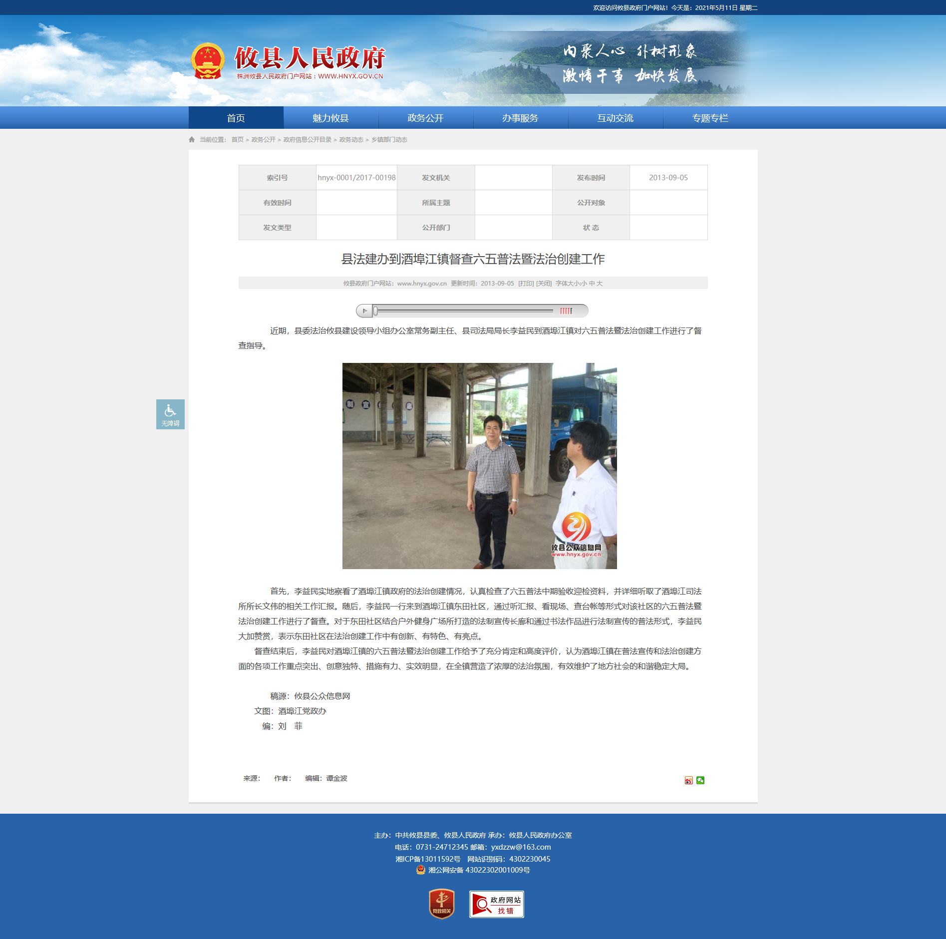 近期,县委法治攸县建设领导小组办公室常务副主任、县司法局局长李益民到酒埠江镇对六五普法暨法治创建工作进行了督查指导。