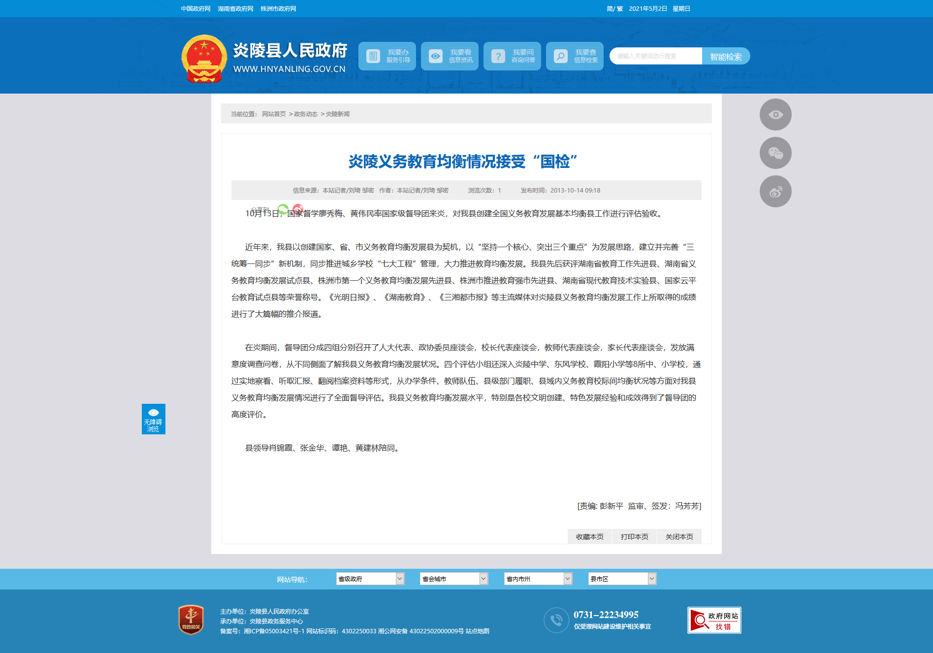 炎陵义务教育均衡情况接受“国检”